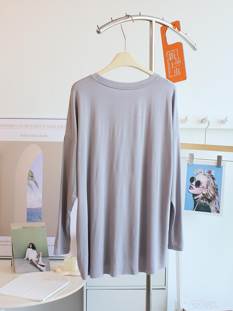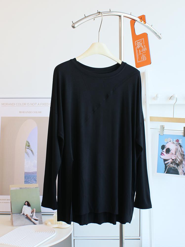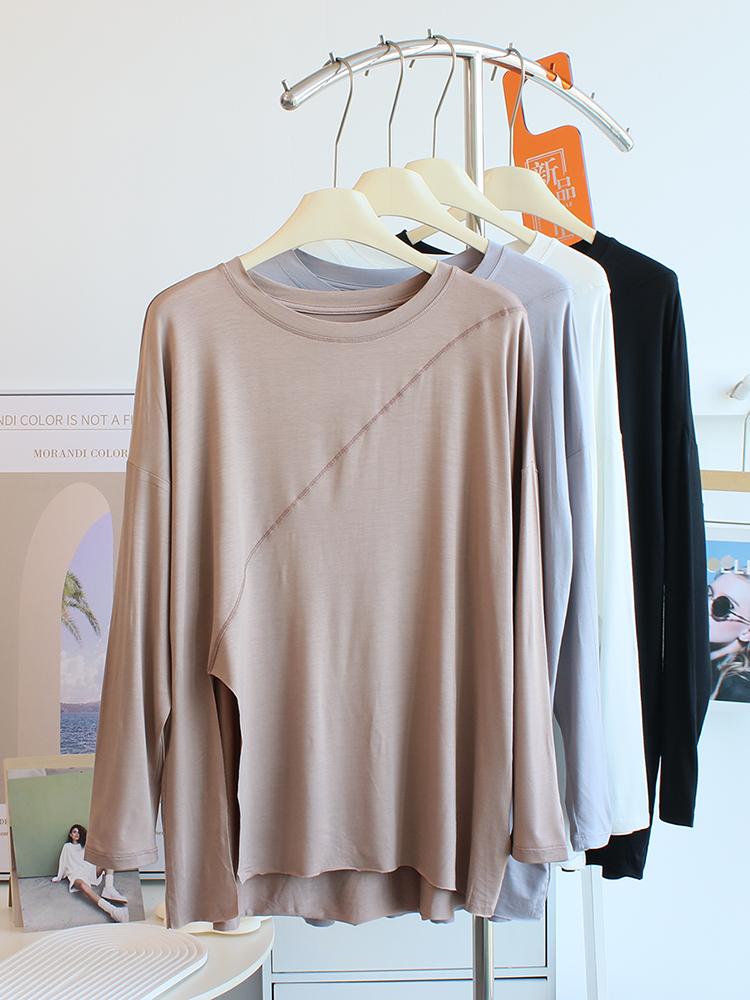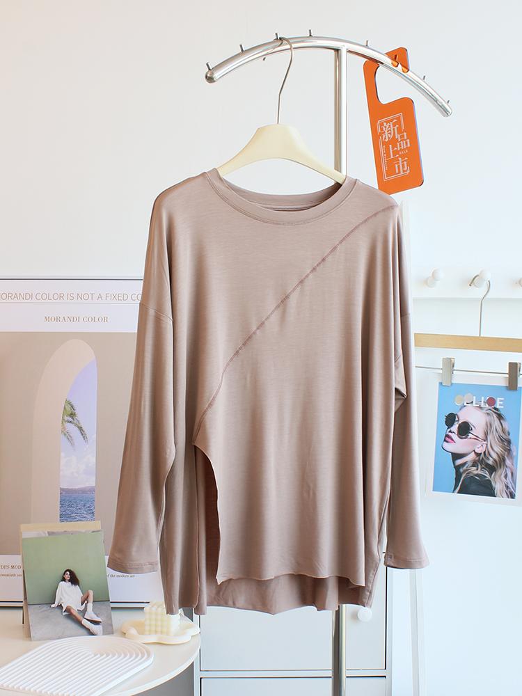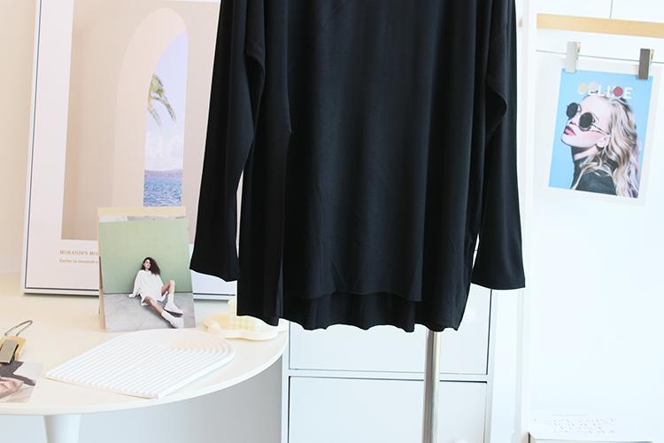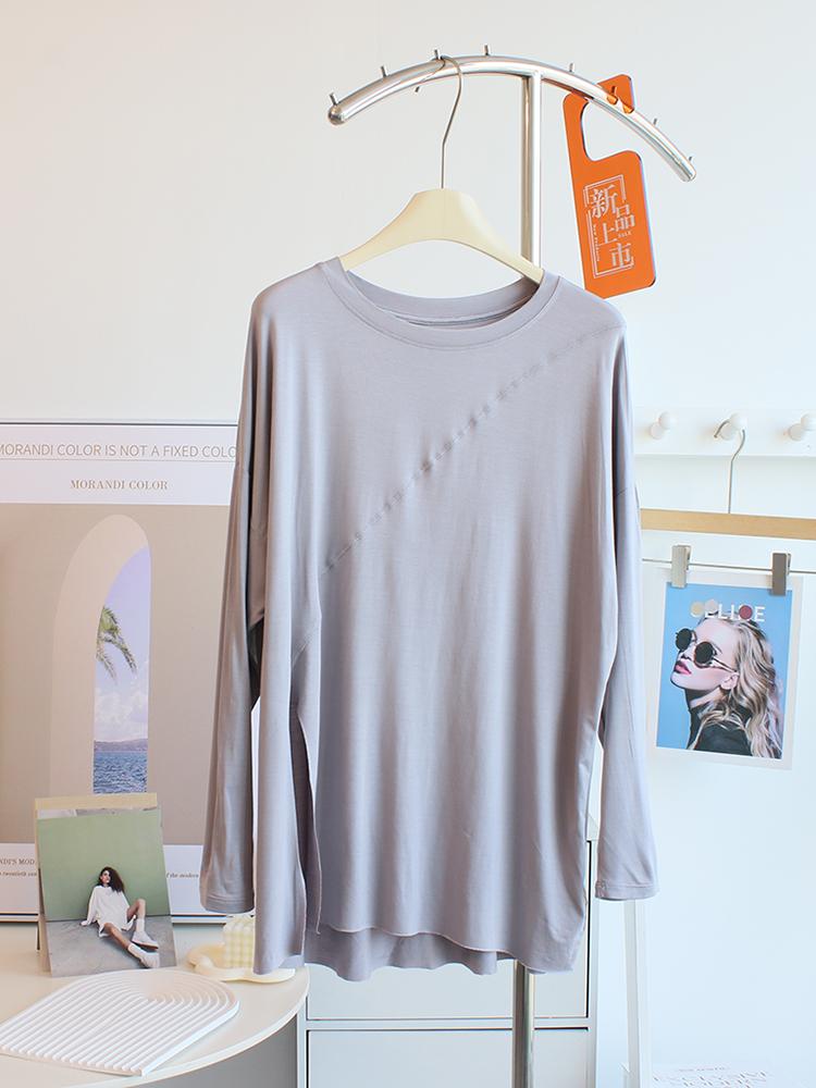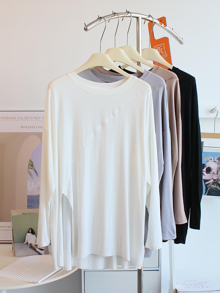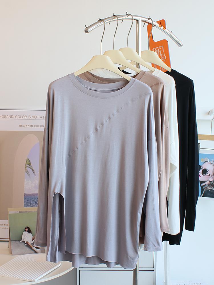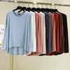 Camiseta modal feminina de manga comprida com hem split split hem feminina de manga comprida drapeada plus size bottom top