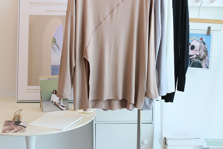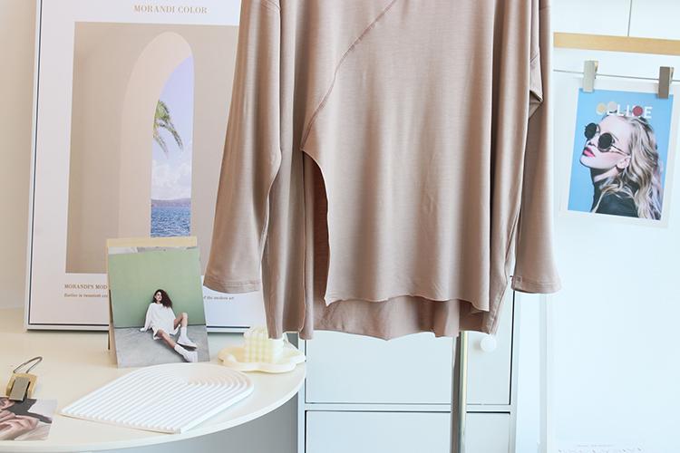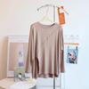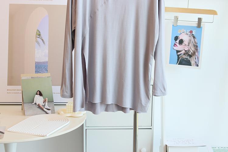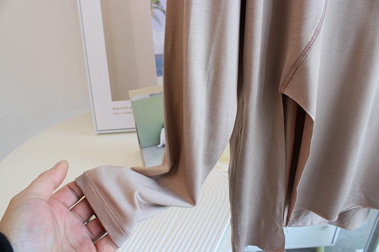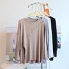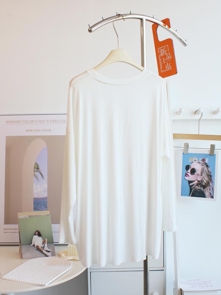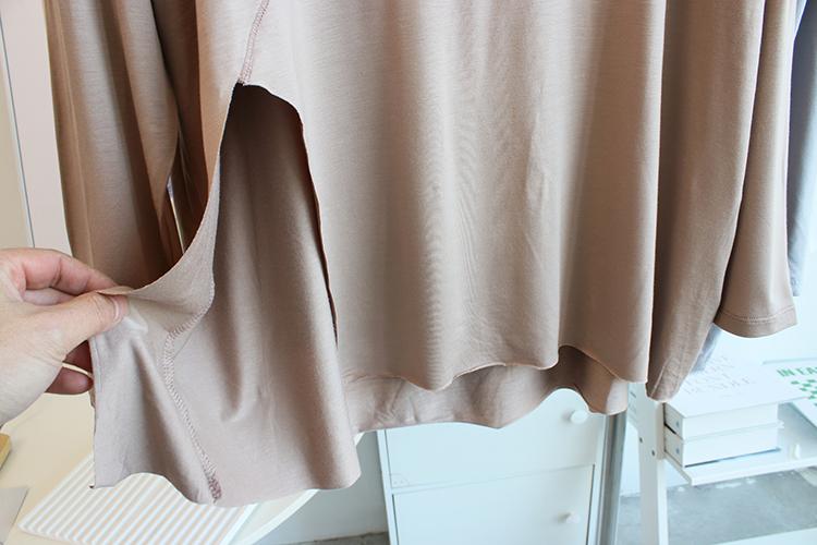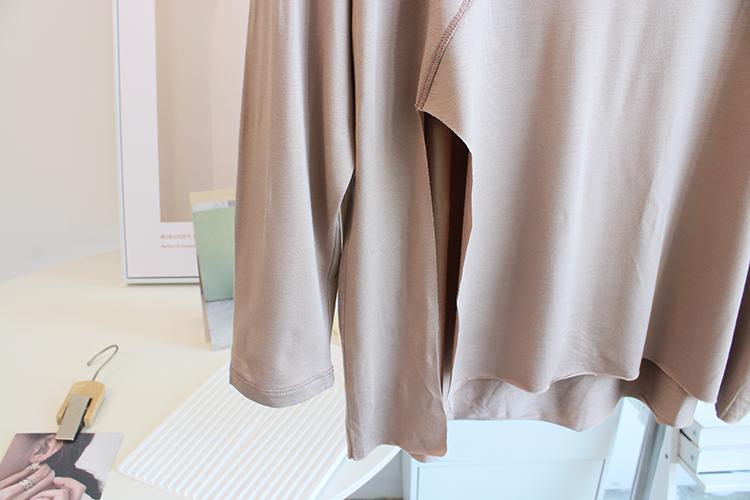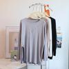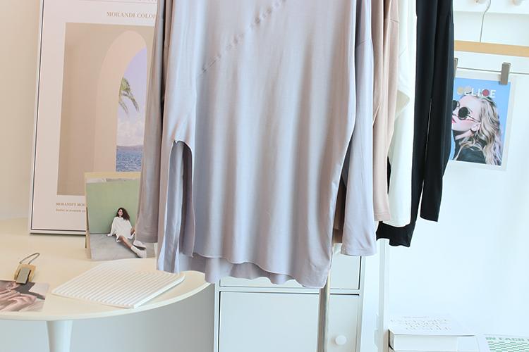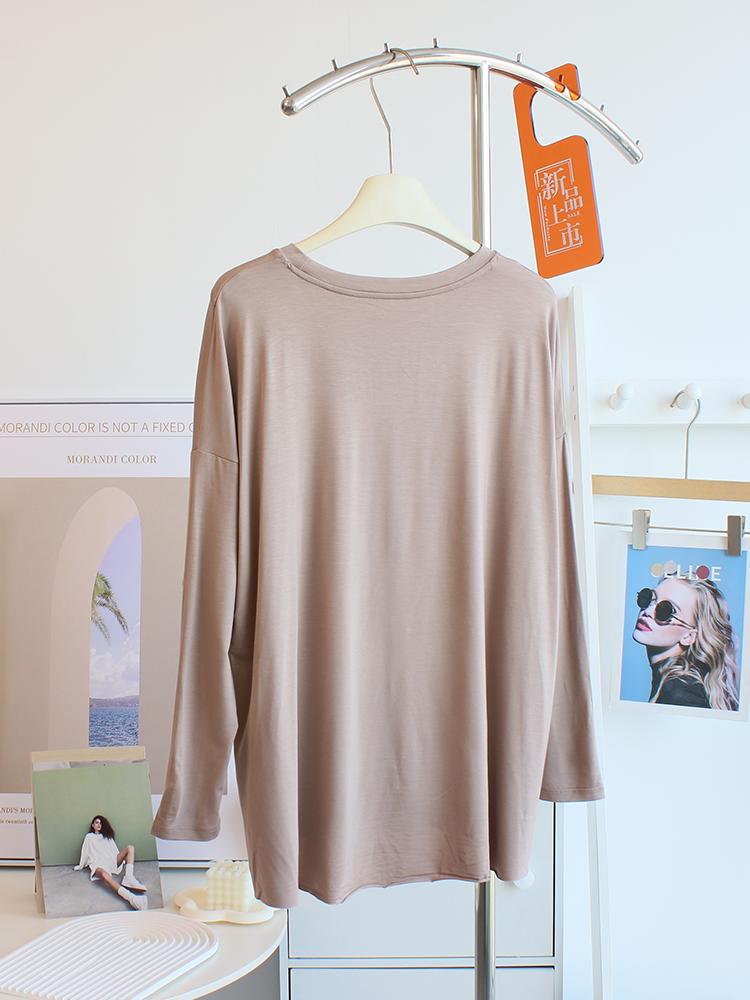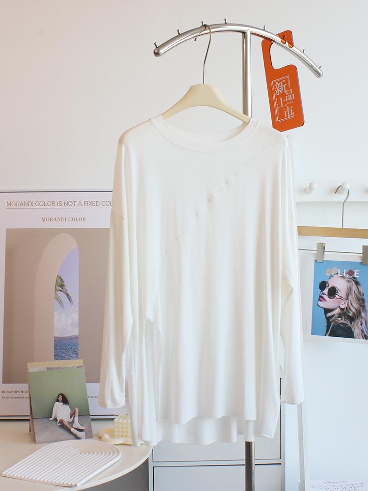 Camiseta modal feminina de manga comprida com hem split split hem feminina de manga comprida drapeada plus size bottom top