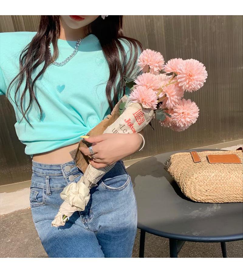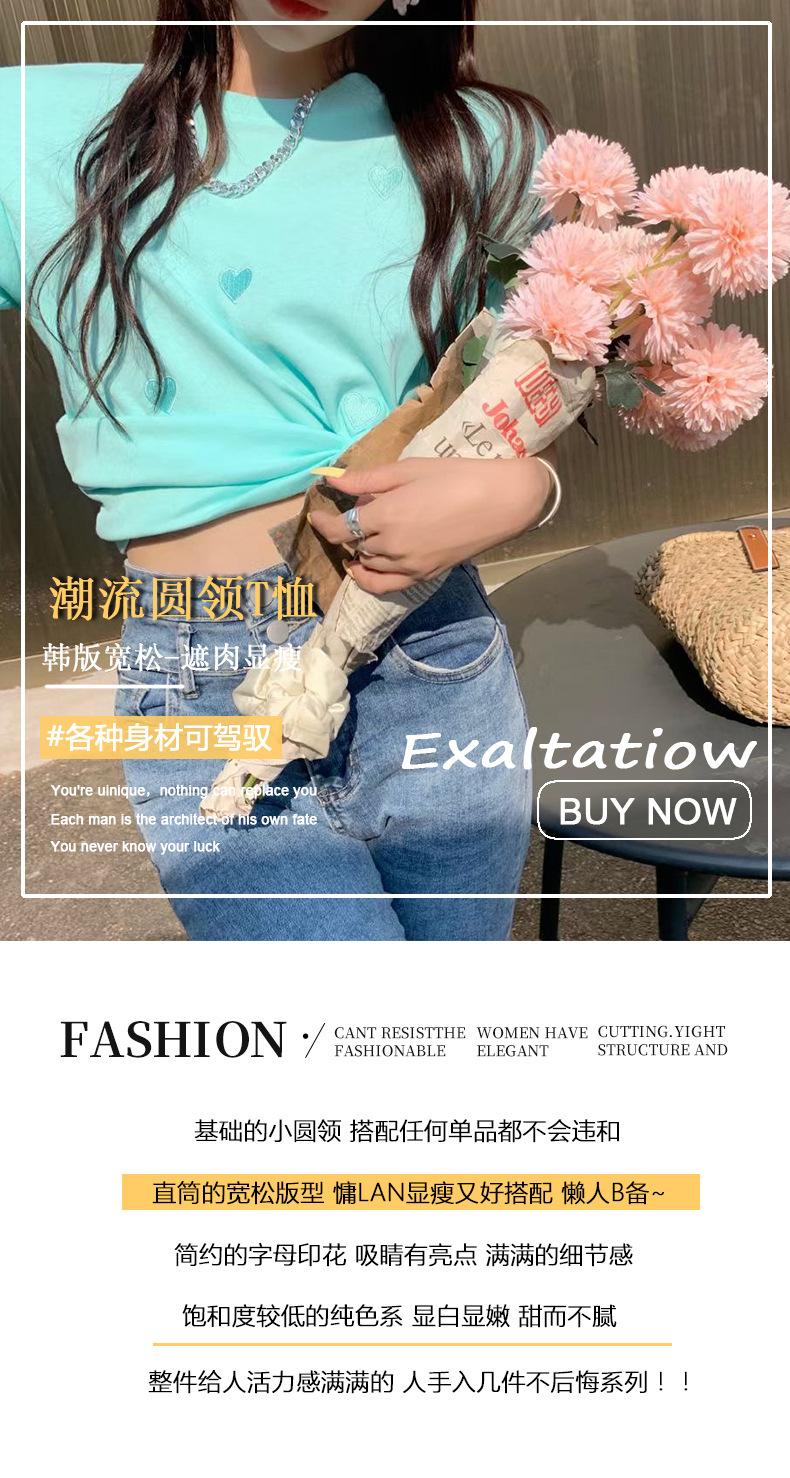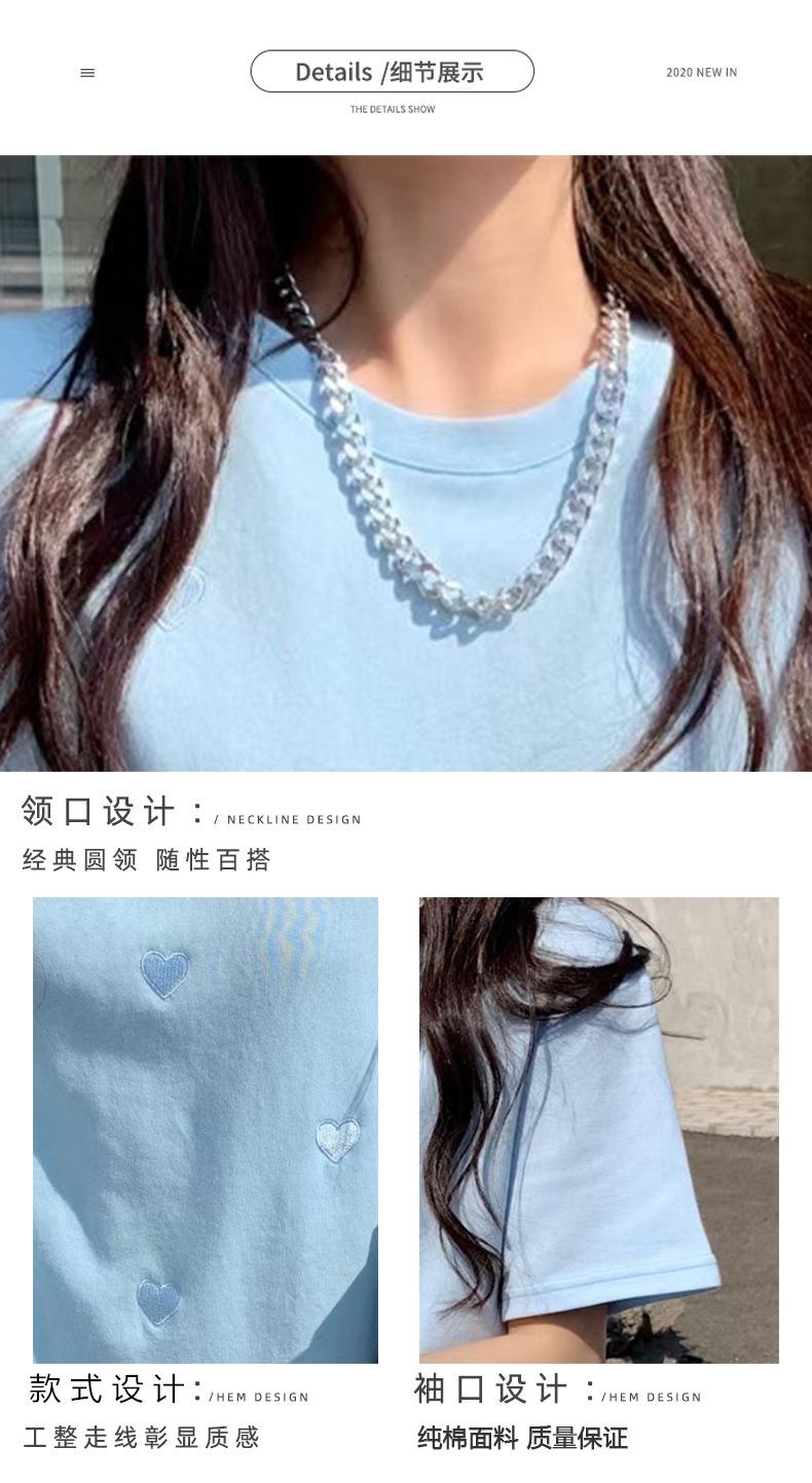 Camiseta de Manga Curta para Mulheres 2024 Verão Novo Estilo Gola Redonda Amor Bordado Solta Estilo Coreano Top Atacado Transfronteiriço