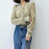 Tinta tie-dyed seda brilhante seda V-neck top manga comprida feminina 2023 Outono New Western estilo camisa de emagrecimento