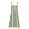 Verão Novo Europeu e Americano Roupas Femininas Retrô Cor Sólida Doce Simples Quadrado Colar Botão Decoração Slim Fit Vestido S11459