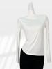 Camisa feminina de alta qualidade de algodão de alta colarinho com frente e costas Slim-fit Pile Collar de manga comprida T-shirt para mulheres no início da primavera