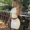 Terno de saia transfronteiriço de venda quente, terno de duas peças oco de manga comprida com gola quadrada, design com cordão no peito,