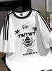 Estilo americano três barras puro algodão manga curta camiseta feminina marca de moda europeia e americana 2024 novo estilo quente verão solto meia manga top