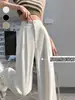 Calças esportivas de seda cinza gelo femininas verão cintura alta fina solta reta casual perna larga calças legais anti-mosquito protetor solar calças