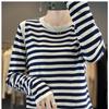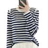 Outono Transfronteiriço Listrado Francês Gola Redonda Feminino Solto Tricô Fino Pulôver Manga Longa Suéter Feminino Estilo Comprimento Médio