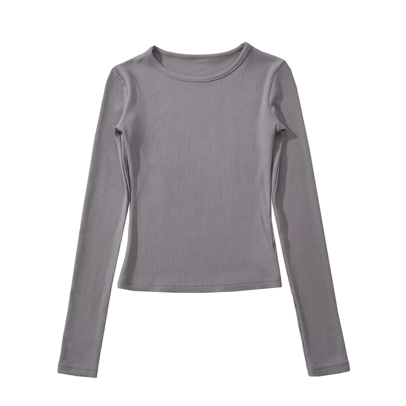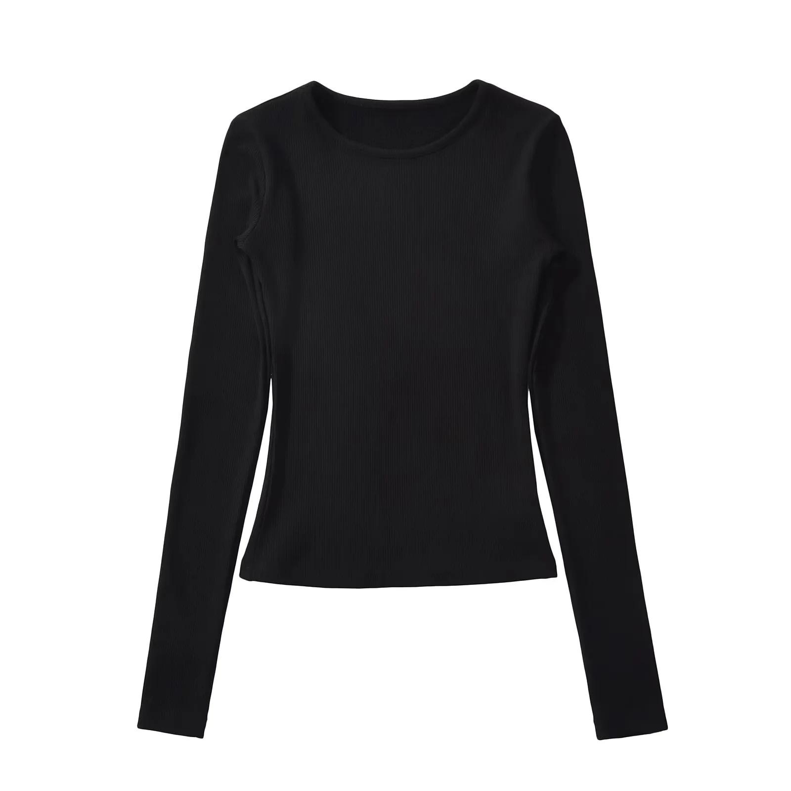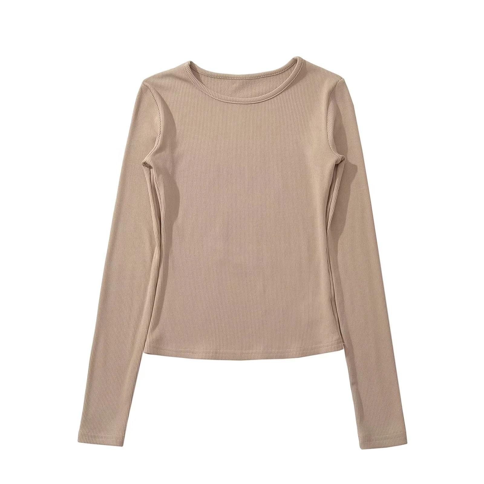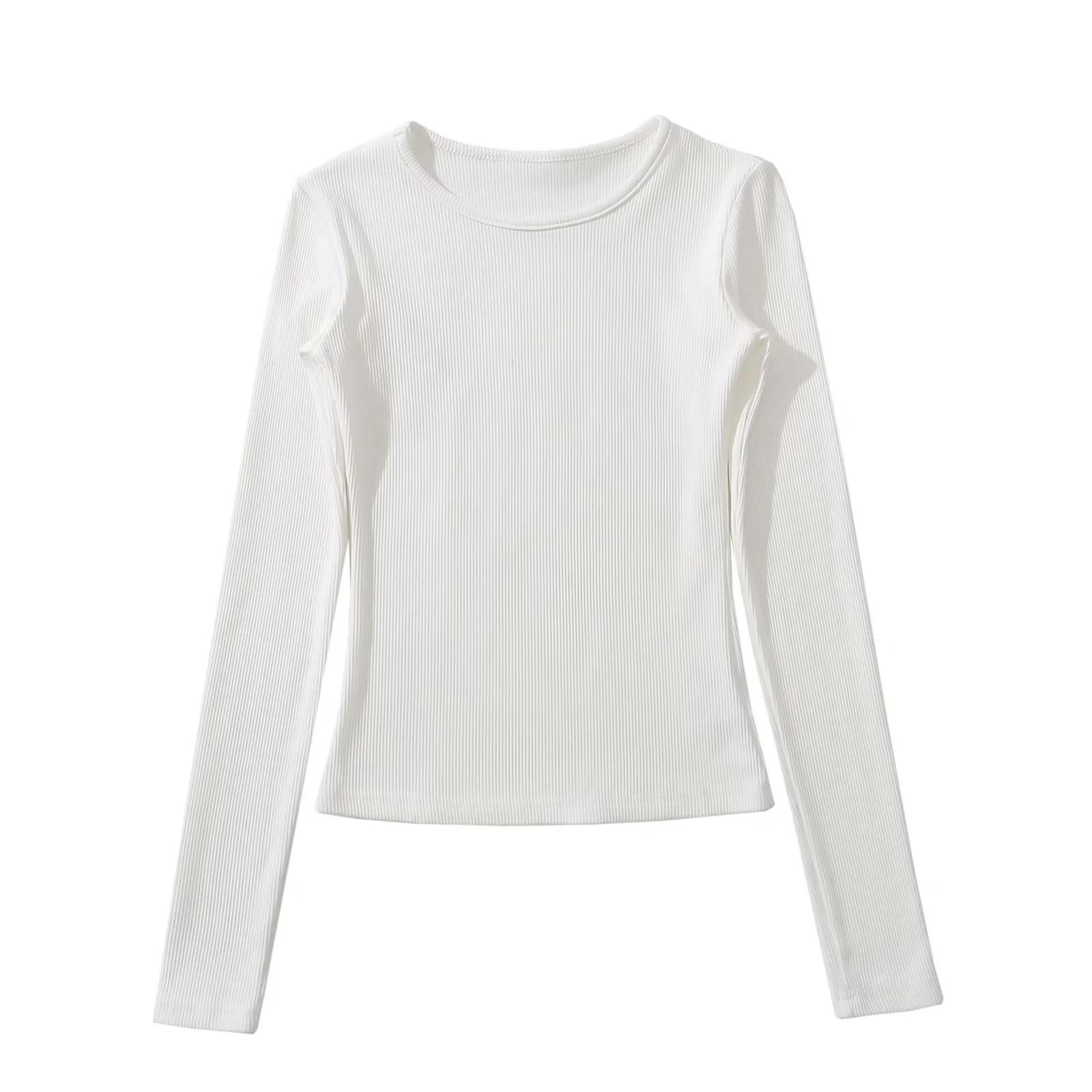 Compre Camisa de fundo de malha forrada de lã 2023 outono e inverno estilo europeu e americano linha pit pescoço redondo emagrecimento emagrecimento cor sólida camiseta manga comprida no atacado no Joom.pro