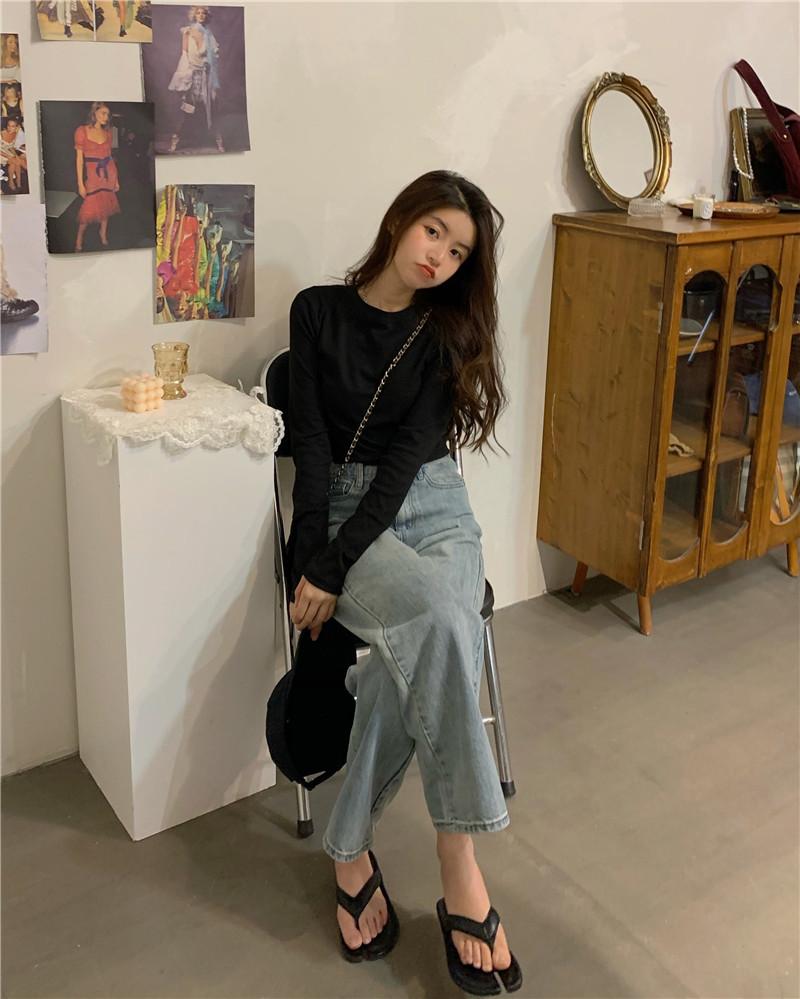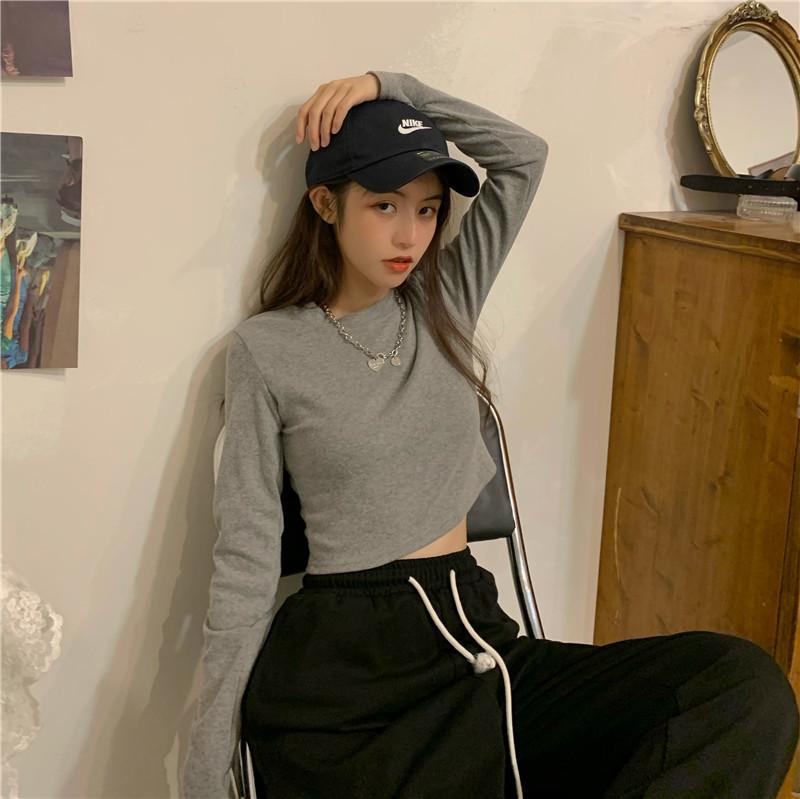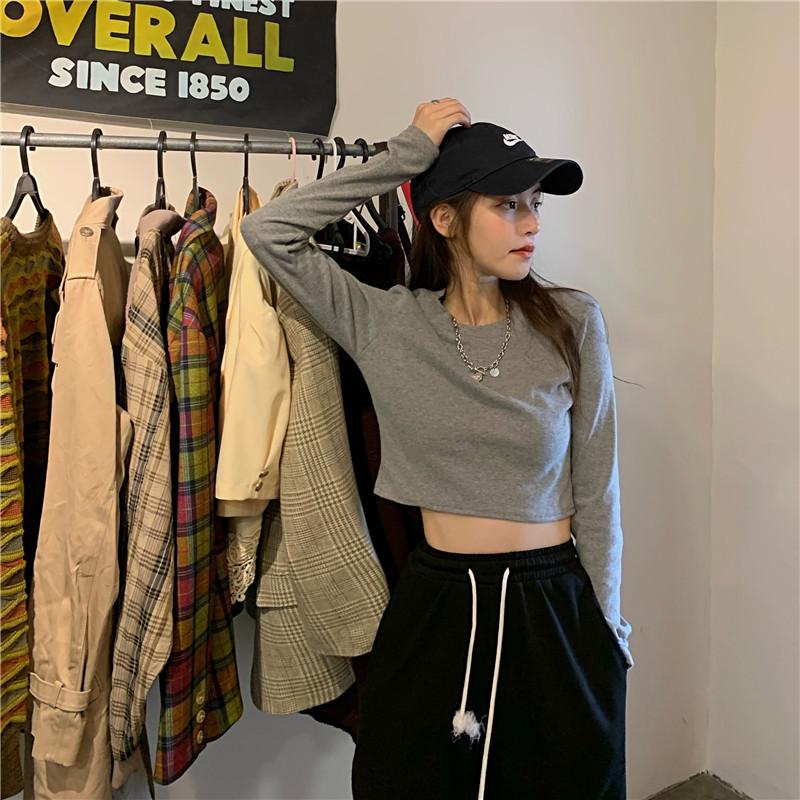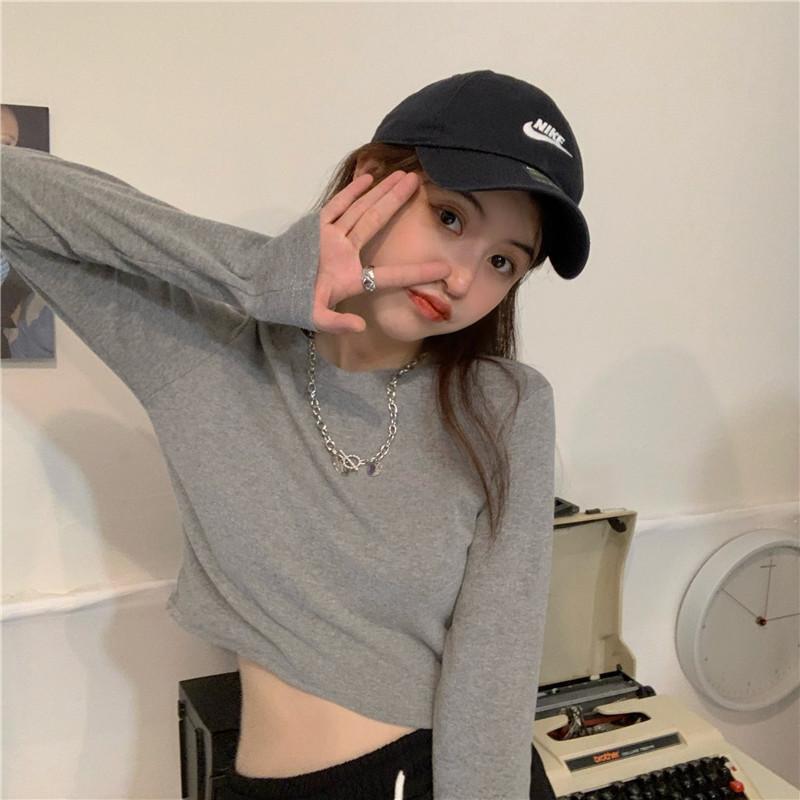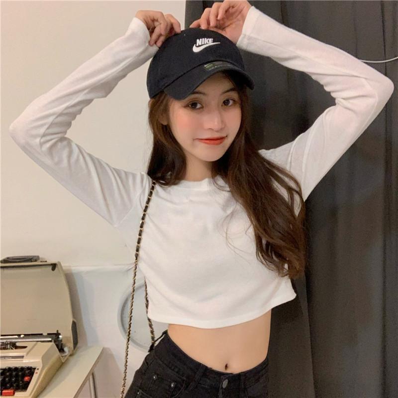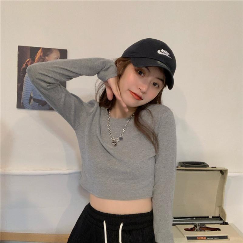 Compre Camiseta Básica Branca de Manga Longa, Top Cropped Curto Estilo Coreano, Blusa Feminina Slim-Fit Modeladora para Outono 2025 no atacado no Joom.pro