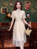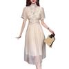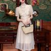 Novo Vestido Cheongsam Chinoiserie Melhorado para Mulheres Verão Estilo Nacional Retrô Fivela-Como Cintura Ajustada Saia de Chiffon