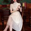 Compre Novo Vestido Cheongsam Chinoiserie Melhorado para Mulheres Verão Estilo Nacional Retrô Fivela-Como Cintura Ajustada Saia de Chiffon no atacado no Joom.pro