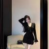 Puro desejo V-neck quente vestido da menina feminina estilo francês elegante doce e picante primavera fina e verão fundo cintura-apertado bainha saia curta