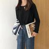 Camiseta Básica de Manga Comprida Lisa para Mulheres, Roupa Versátil Solta de Outono 2025 Estilo Coreano Roupa de Estudante Gola Redonda Casual Camiseta Roupa Feminina