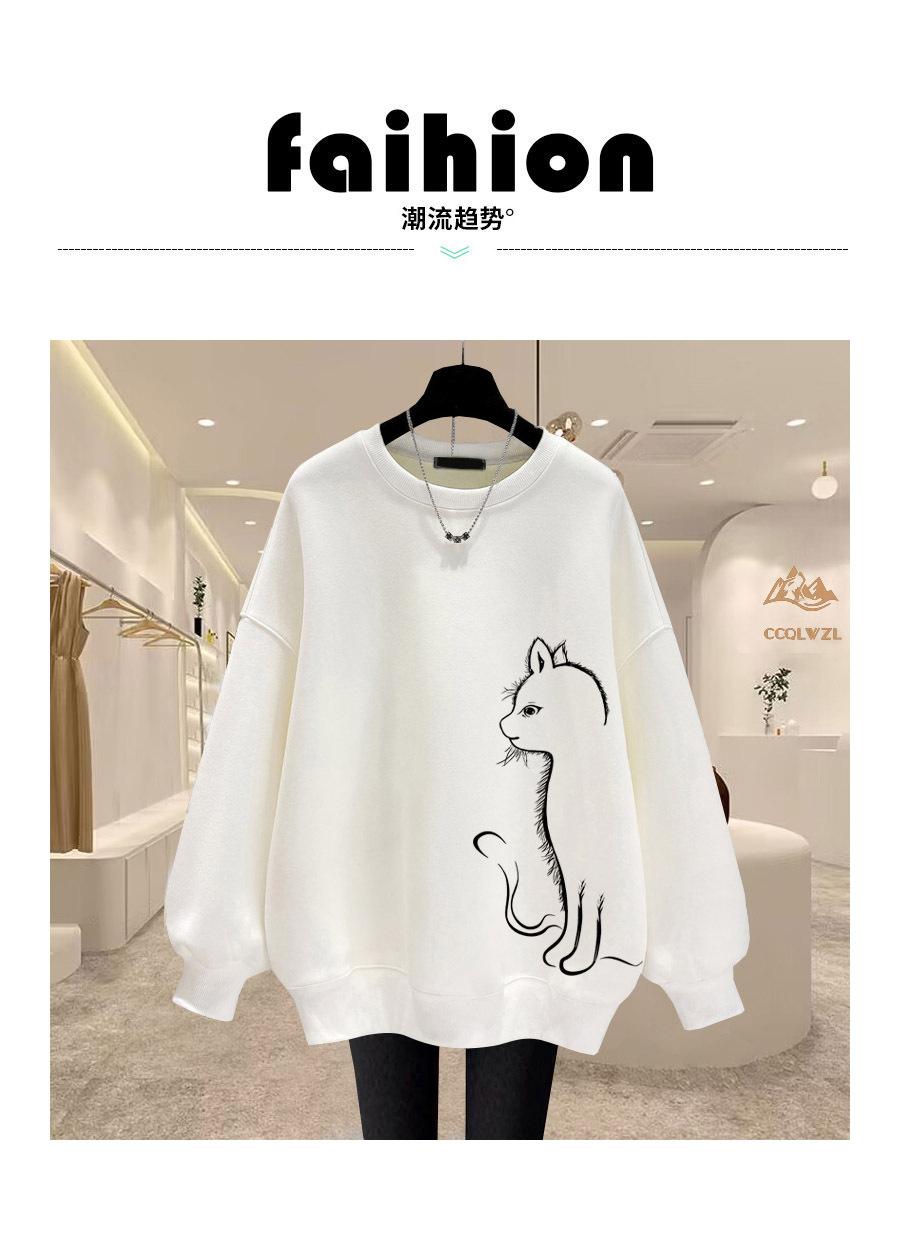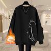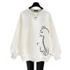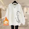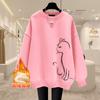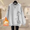 Suéter casual europeu feminino 2023 outono e inverno novo forro de lã grosso gola redonda pulôver moda desenho animado casaco branco maré
