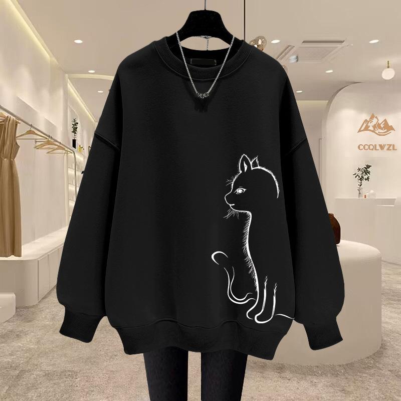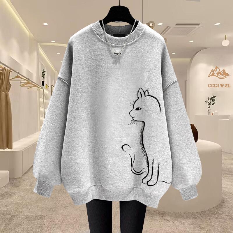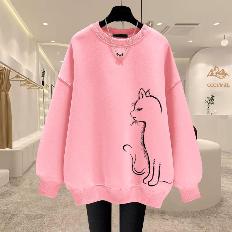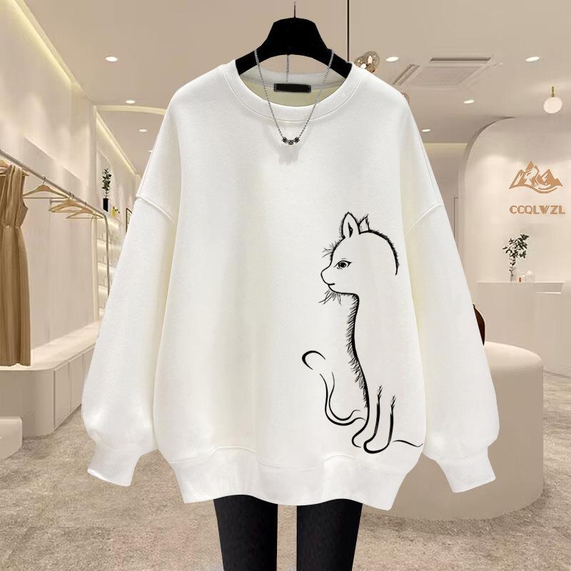 Compre Suéter casual europeu feminino 2023 outono e inverno novo forro de lã grosso gola redonda pulôver moda desenho animado casaco branco maré no atacado no Joom.pro