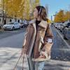 Jaqueta integrada de camurça e pele genuína feminina outono e inverno 2024 Nova jaqueta de motociclista forrada com lã de cordeiro e acolchoada de algodão