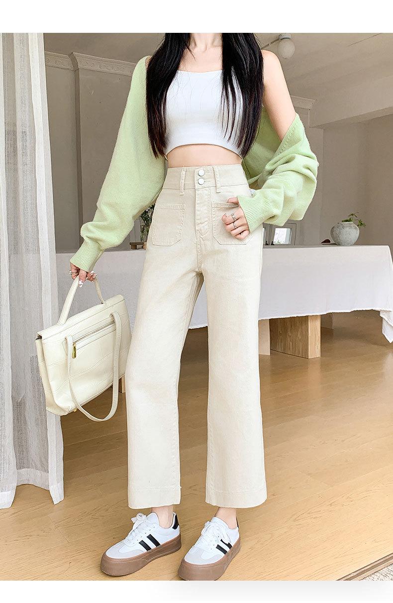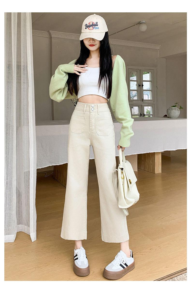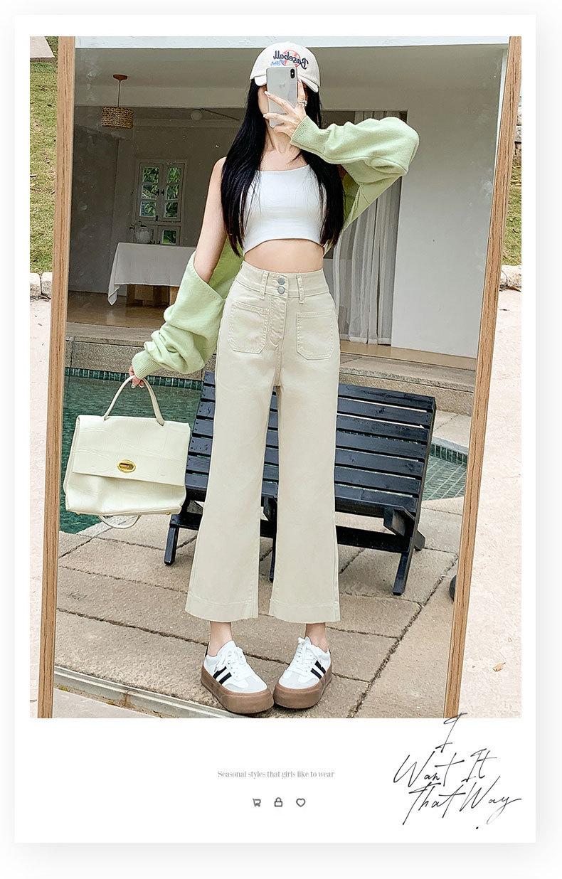 Compre Calças Boca de Sino de Cintura Alta para Mulheres 2025 Primavera Novo Estilo Elásticas Modeladoras Look Alto Jeans Bootcut Oito Pontos para Pessoas Baixas no atacado no Joom.pro