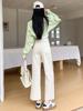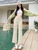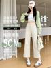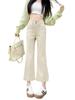 Calças Boca de Sino de Cintura Alta para Mulheres 2025 Primavera Novo Estilo Elásticas Modeladoras Look Alto Jeans Bootcut Oito Pontos para Pessoas Baixas
