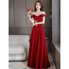 Branco Novo Estilo Vestido Longo Vestido Noiva Casamento Brinde Vestido Porta Traseira Festa de Noivado Ombro Feminino Vestido de Noite Princesa