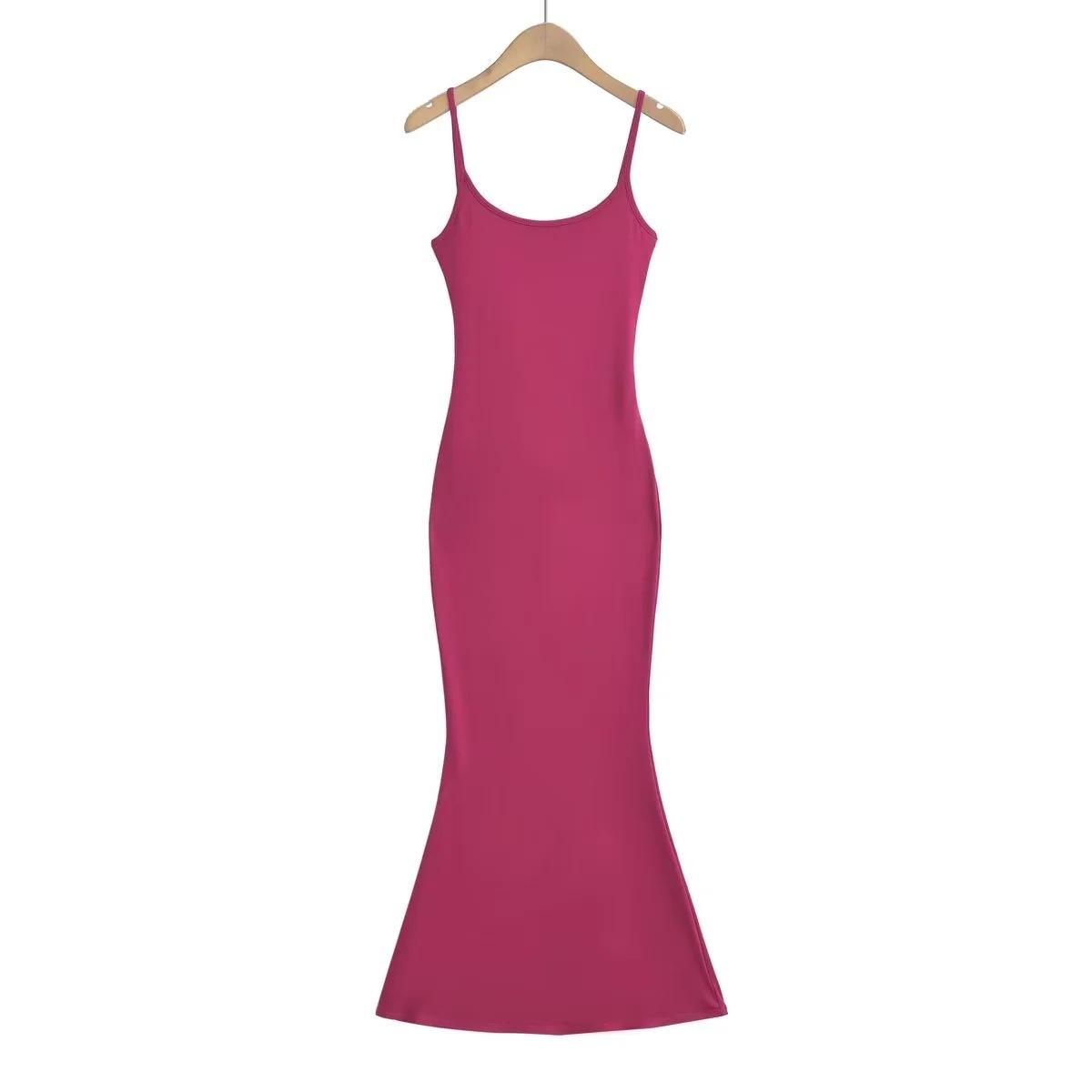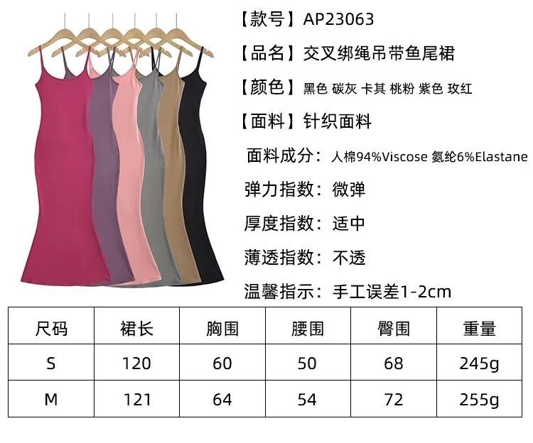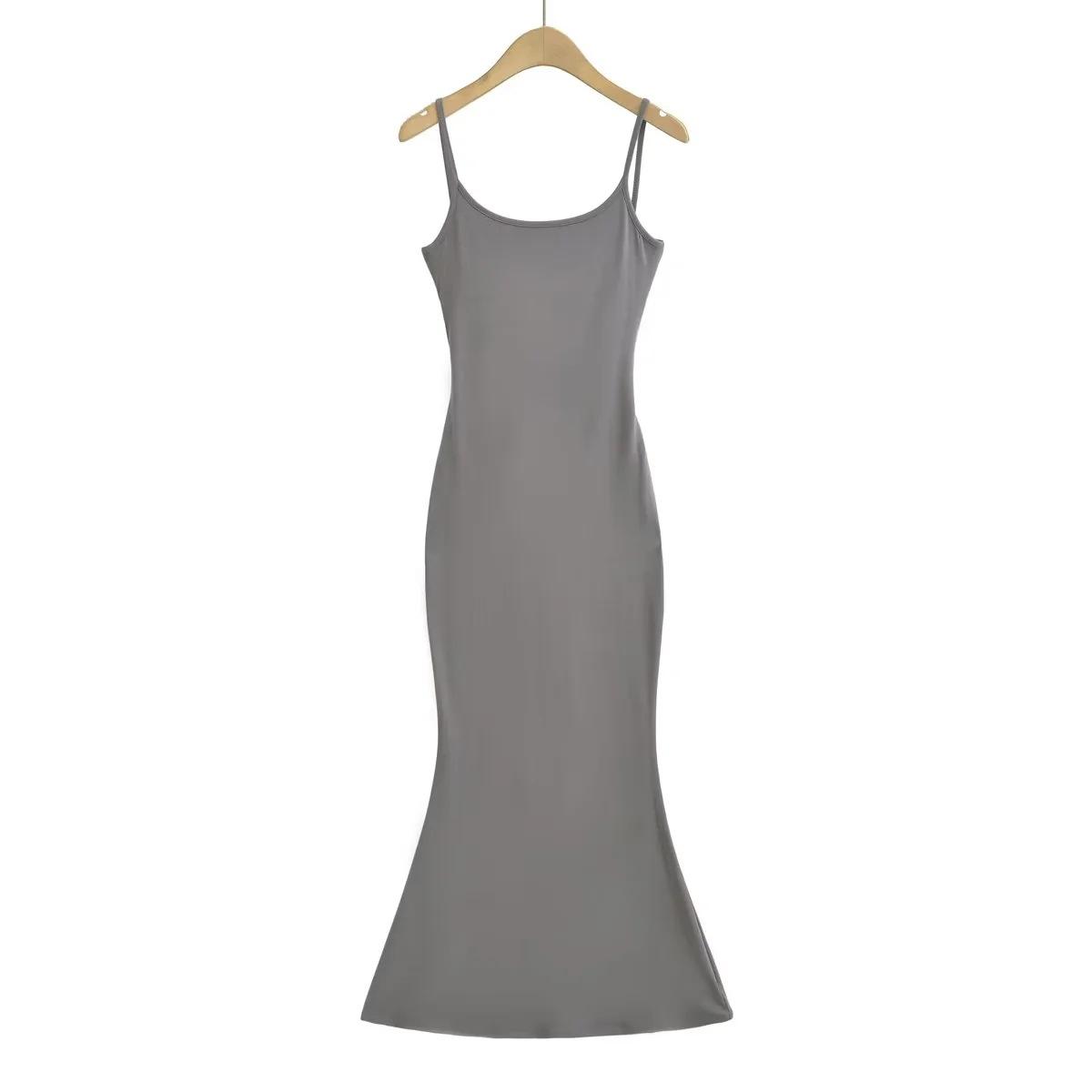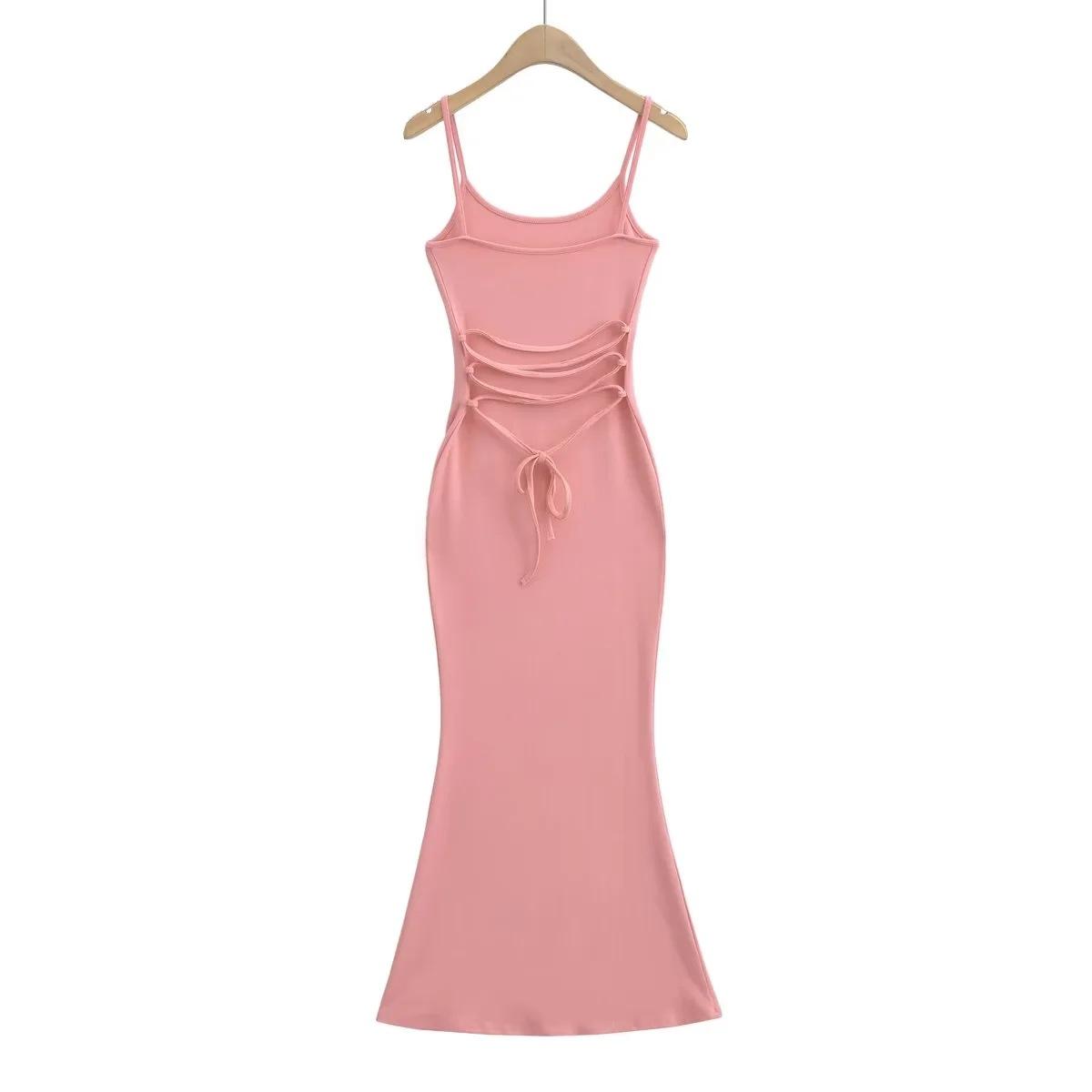 Europeu e Americano Sexy Mulheres Costas Correia Vestido Longo 2023 Verão Novo Cintura Hip Fishtail Vestido