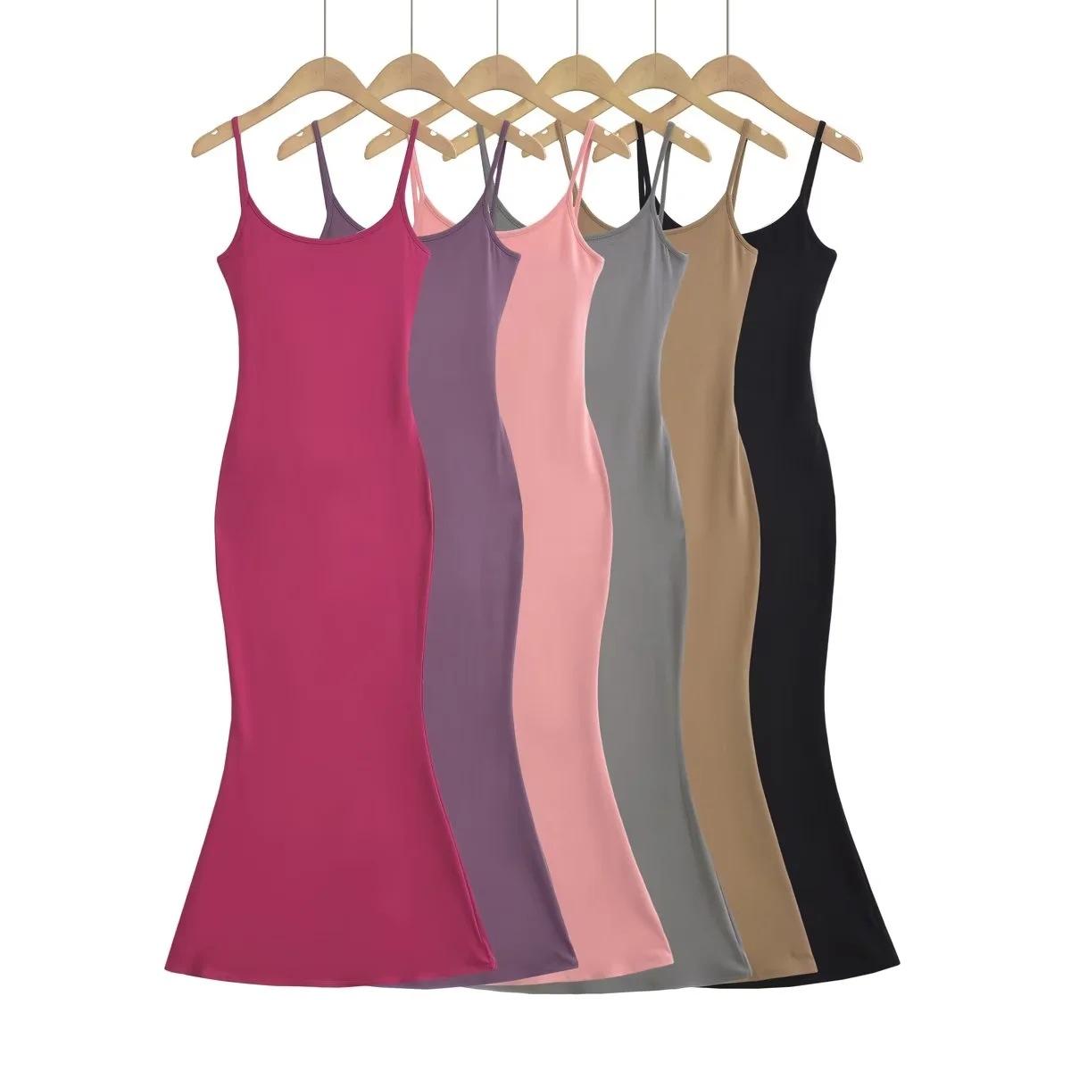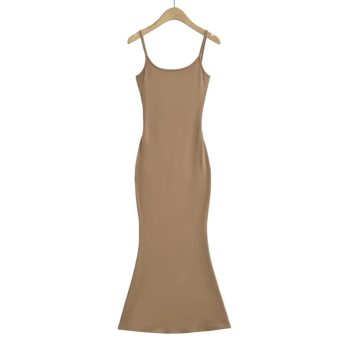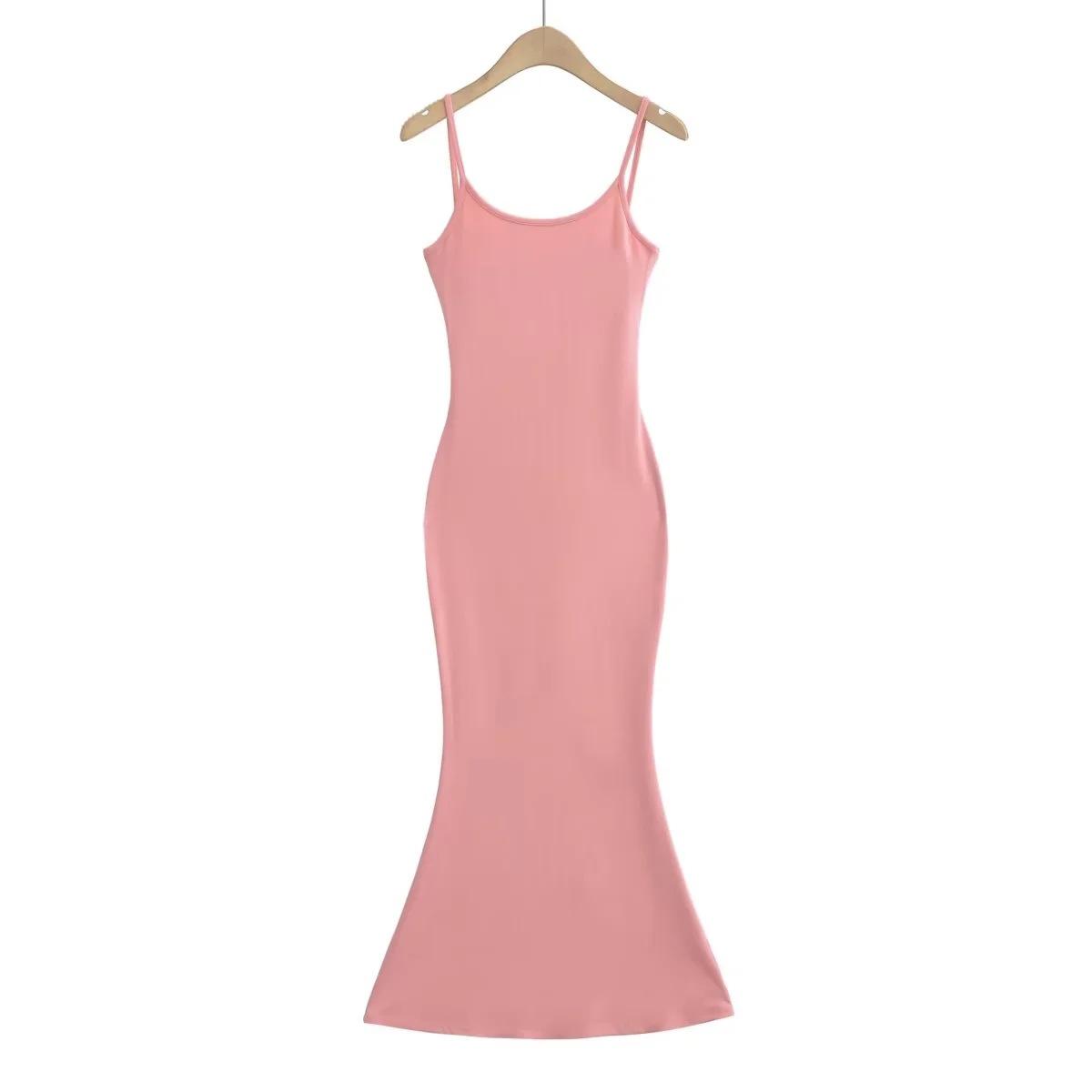 Europeu e Americano Sexy Mulheres Costas Correia Vestido Longo 2023 Verão Novo Cintura Hip Fishtail Vestido
