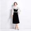Vestido Verde Escuro Outono Novo Estilo 2025 Estilo Francês Elegante Slim Comprimento Médio Saia Vestido 5256