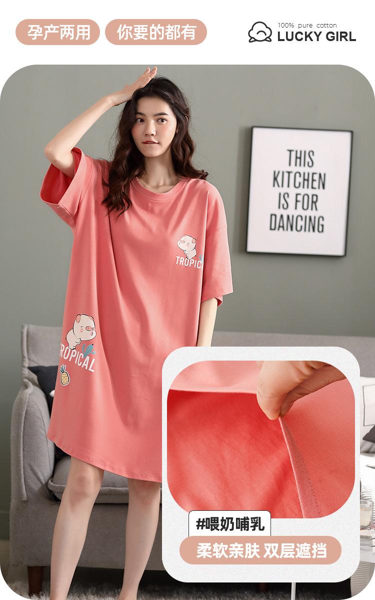 Vestido de Algodão de Manga Curta para Primavera e Verão, Seção Fina Plus Size, Alargado, Amamentação Pós-parto, Confinamento, Gravidez