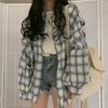 Camisa Xadrez 2026 para Mulheres, Estilo Coreano Soltinho, Comprimento Médio, Estilo Vintage de Hong Kong, Versátil, Mangas Longas Estilo Bf, Proteção Solar, Jaqueta Trendy Ins