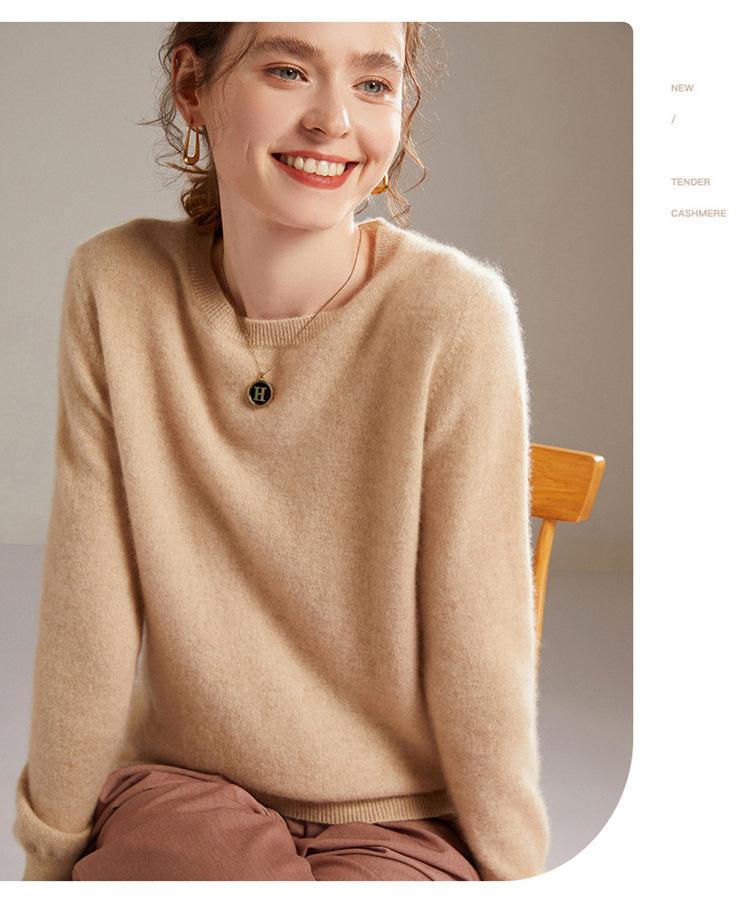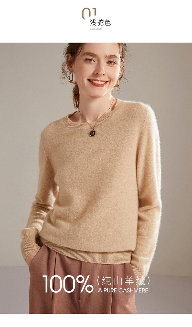 Compre Novo Suéter de Caxemira Feminino 100 Cashmere Cor Sólida Elegante Crewneck Turtleneck Manga Commuting Lazy Style Loose Simple no atacado no Joom.pro