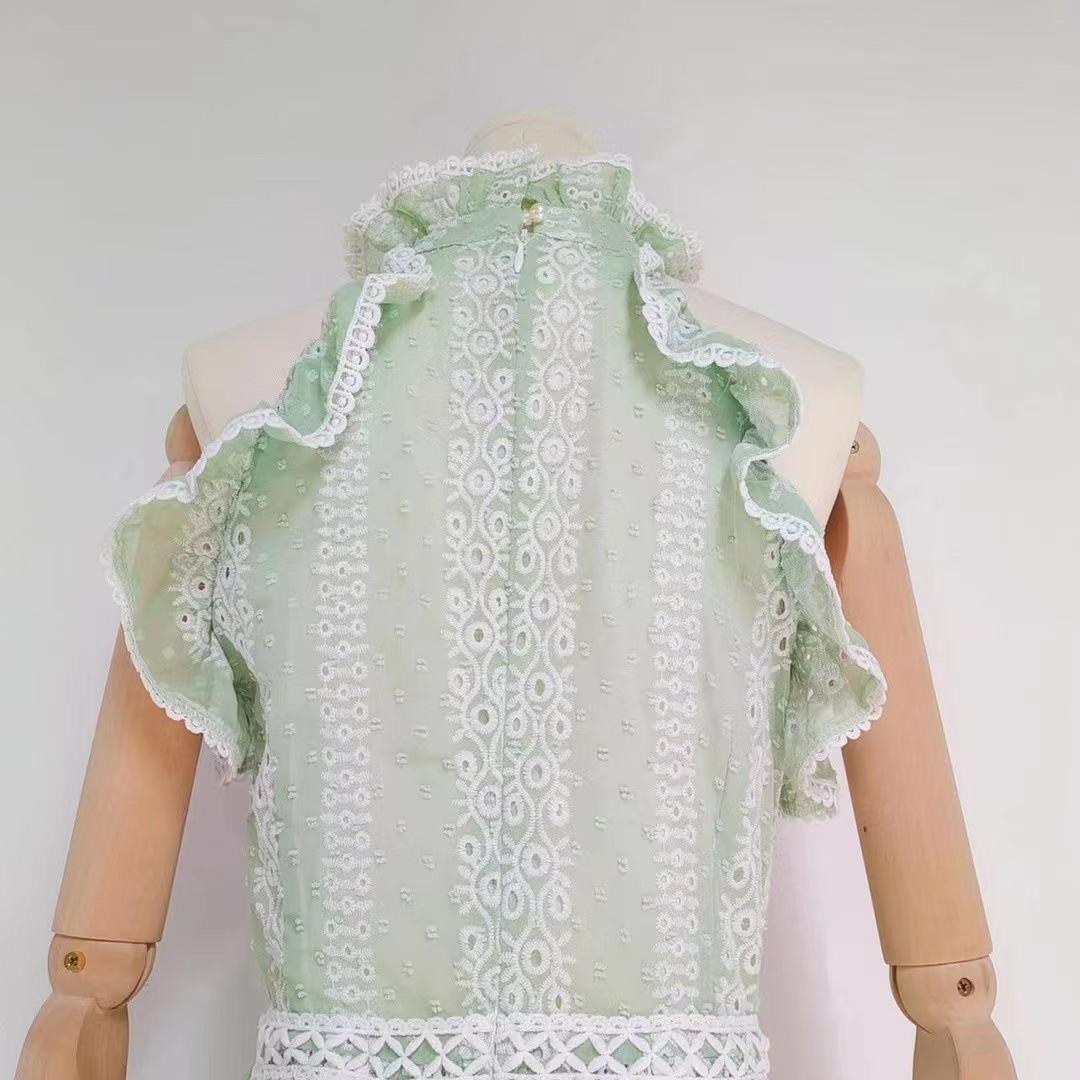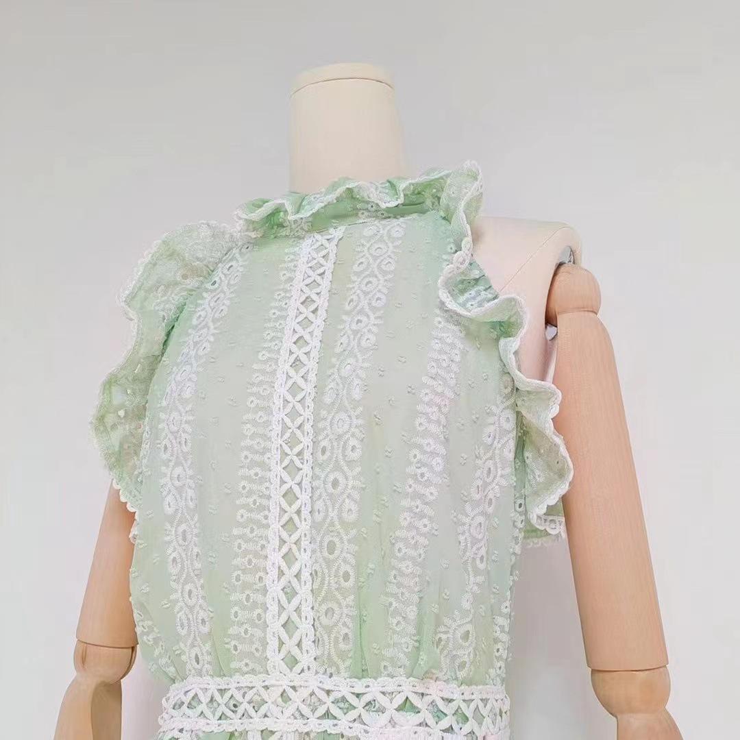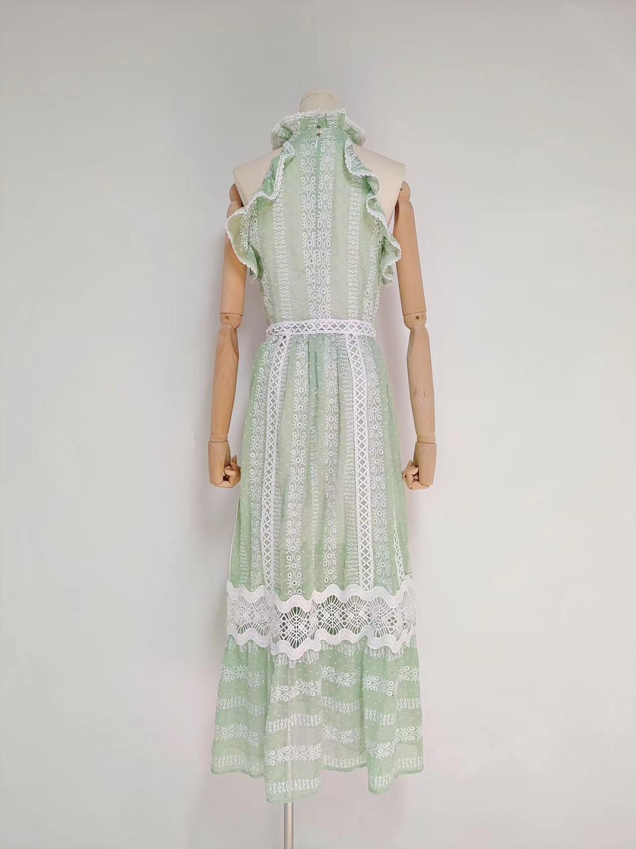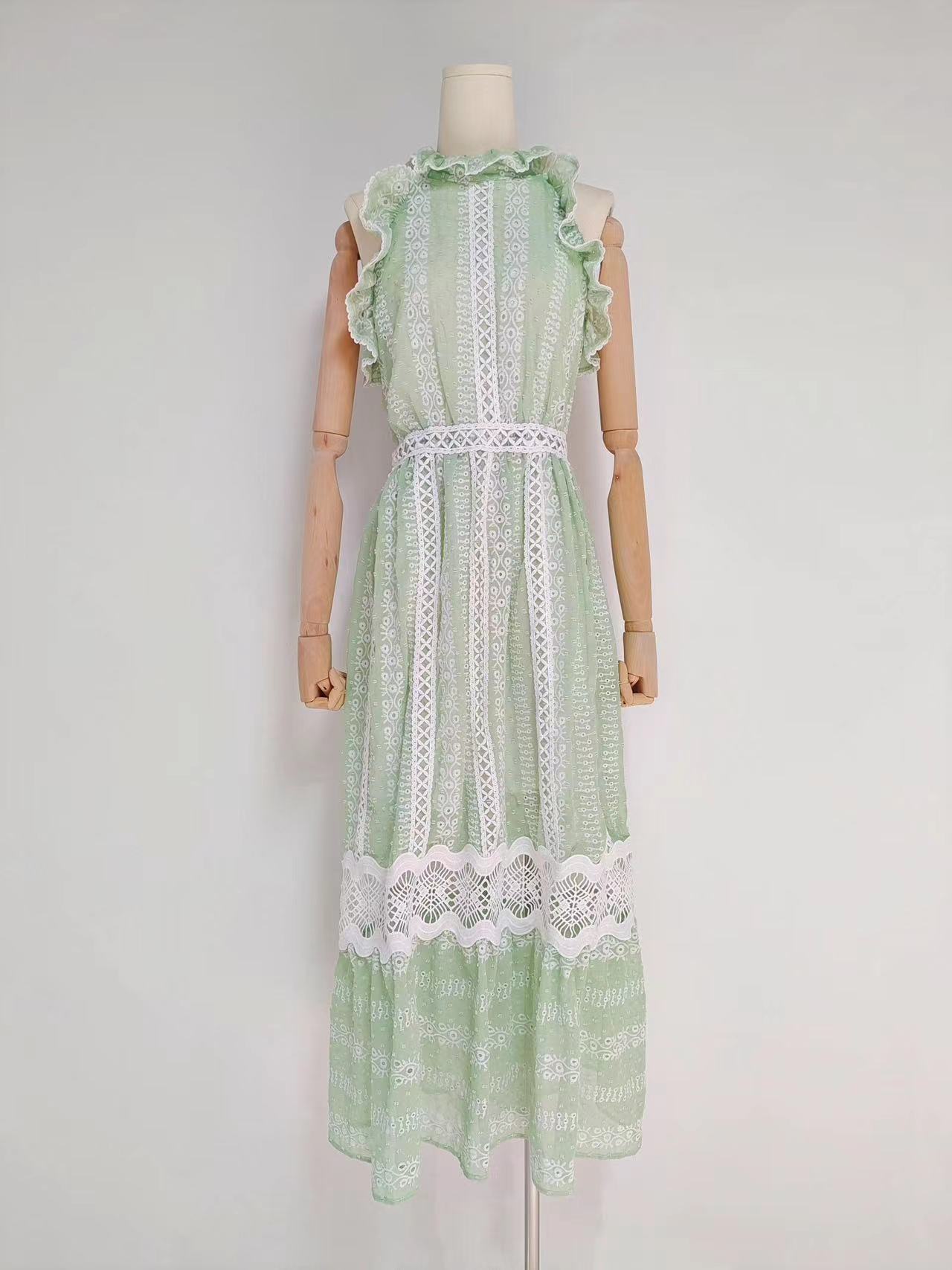 Comércio exterior europeu e americano cross-border 2023 novo pescoço redondo babado costura sem mangas cintura oca vestido longo