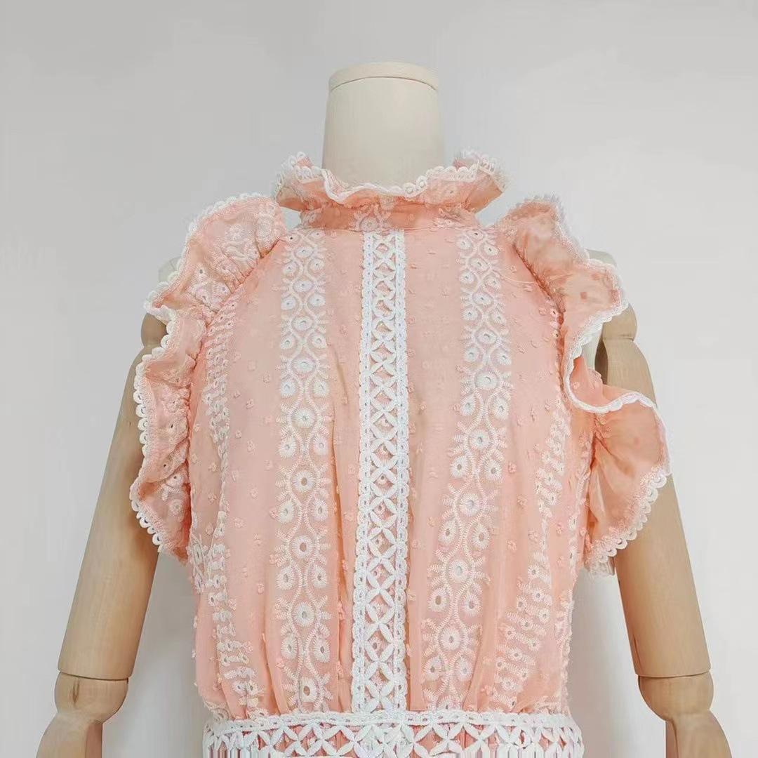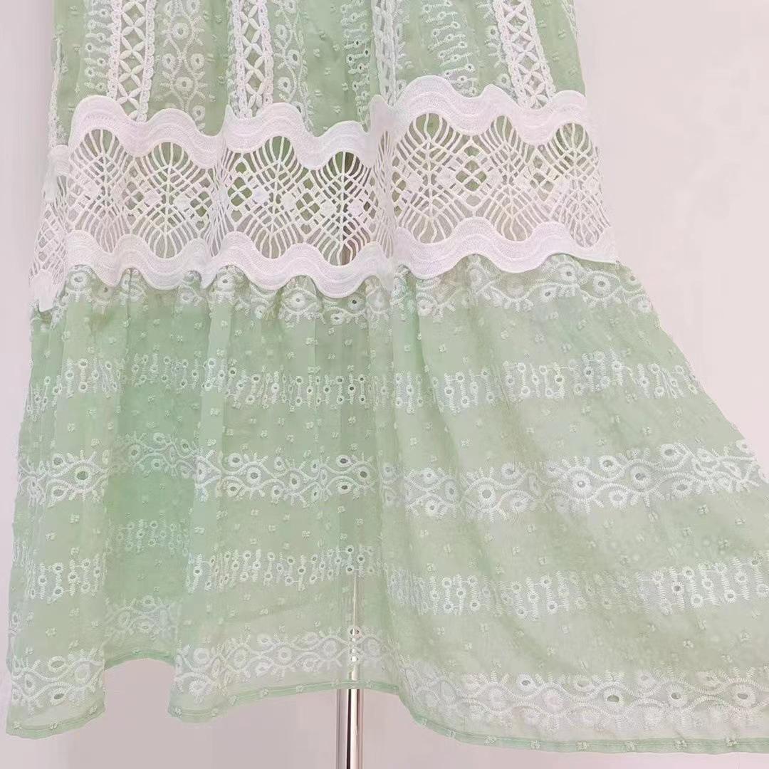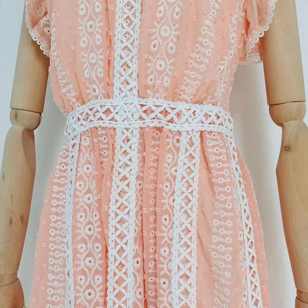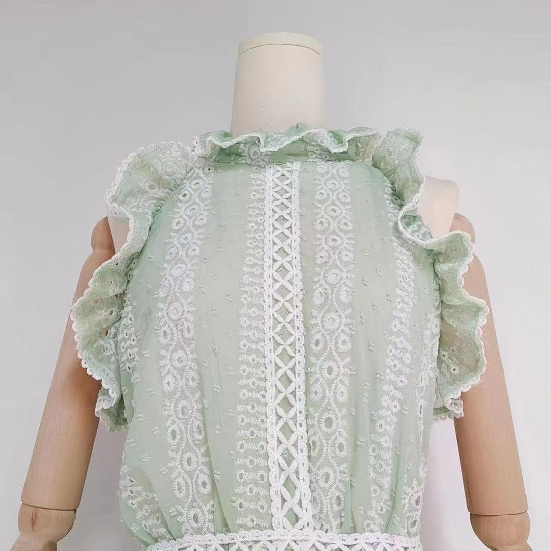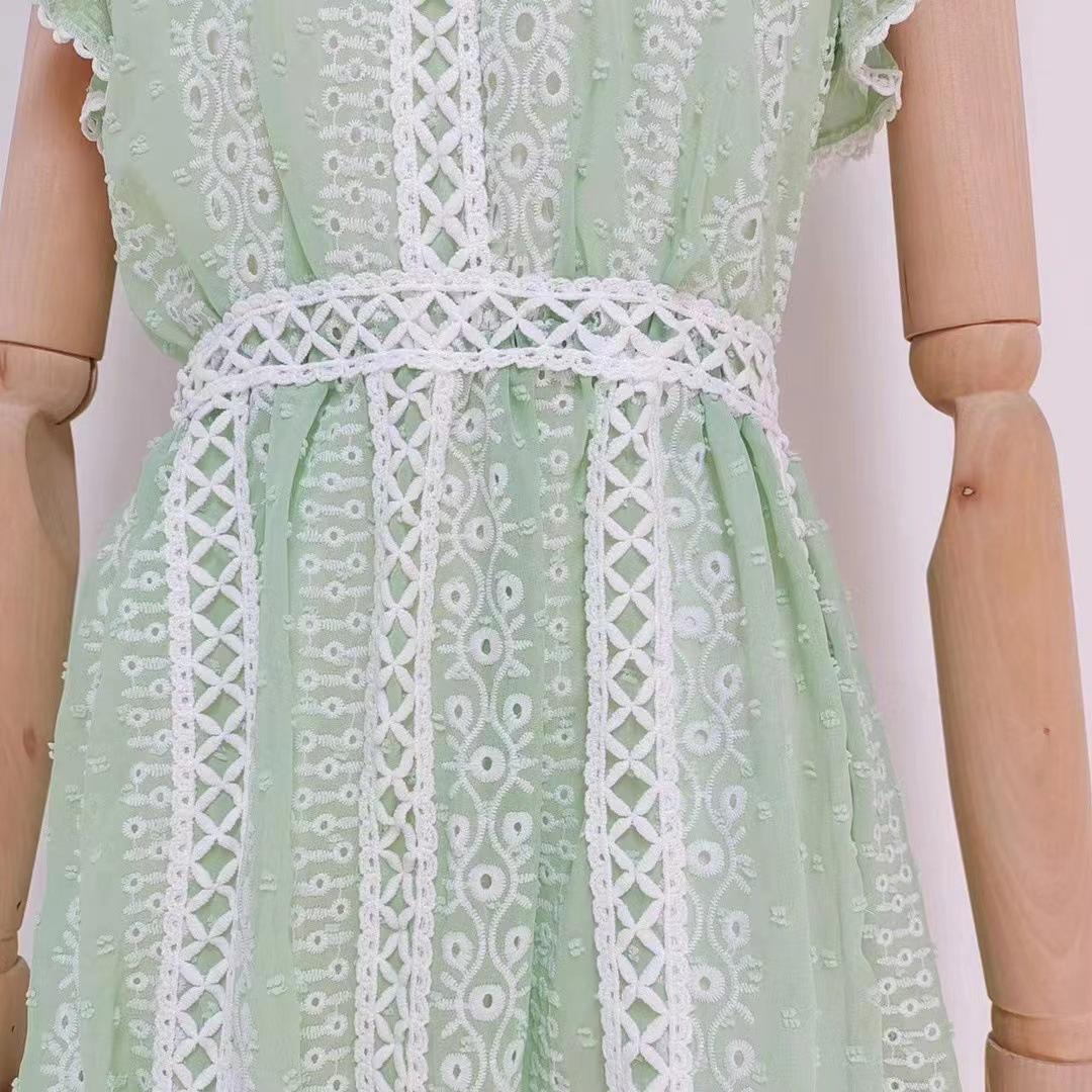 Comércio exterior europeu e americano cross-border 2023 novo pescoço redondo babado costura sem mangas cintura oca vestido longo