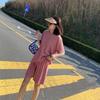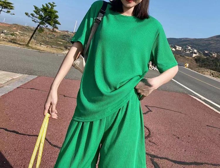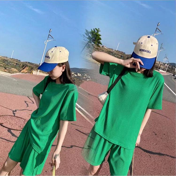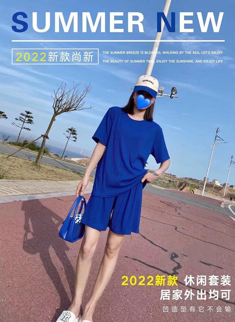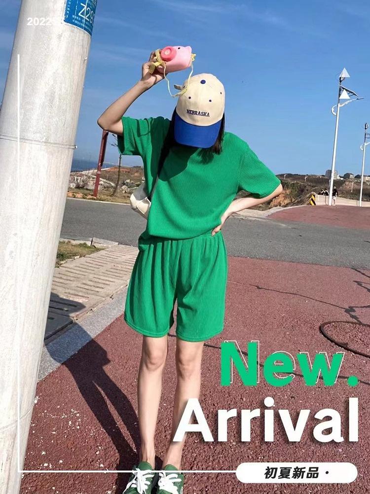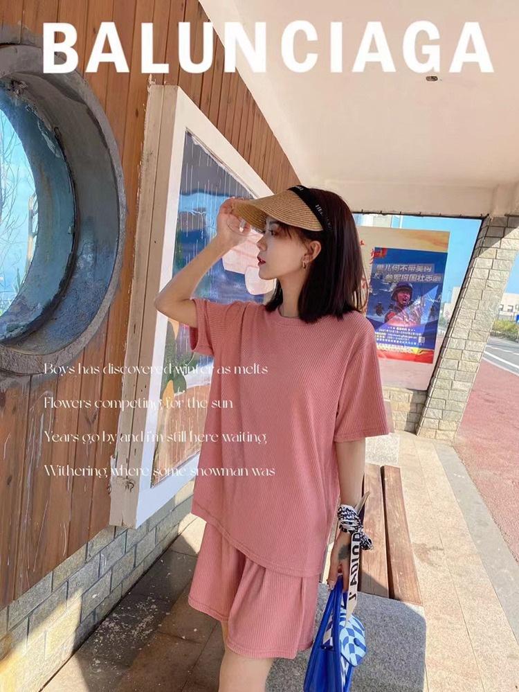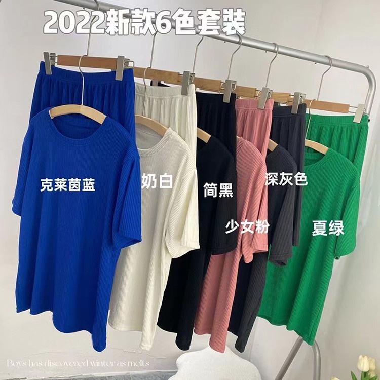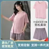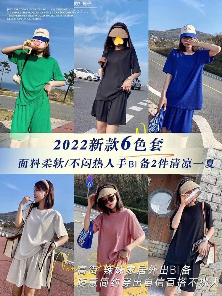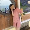 Ice Silk Casual Home Clothes 2024 Verão Novo Estilo Preguiçoso Cor Sólida Loose Shorts de manga curta plus size Conjunto de Duas Peças para Mulheres