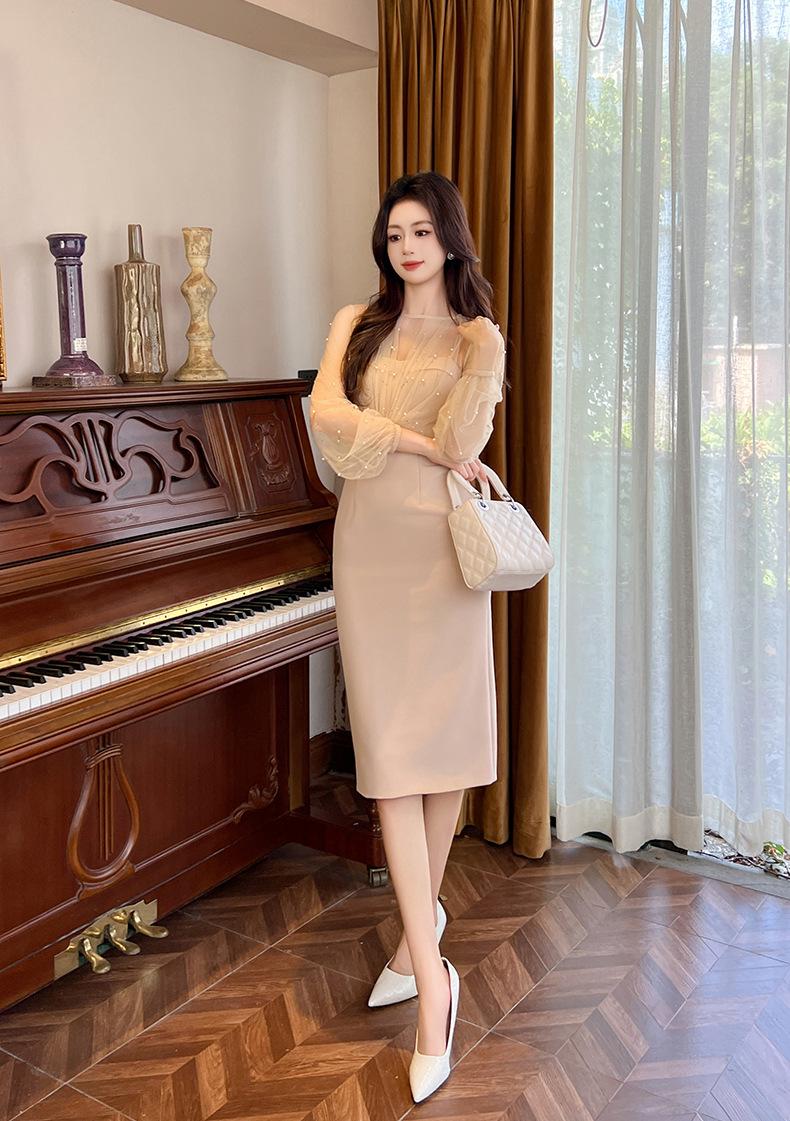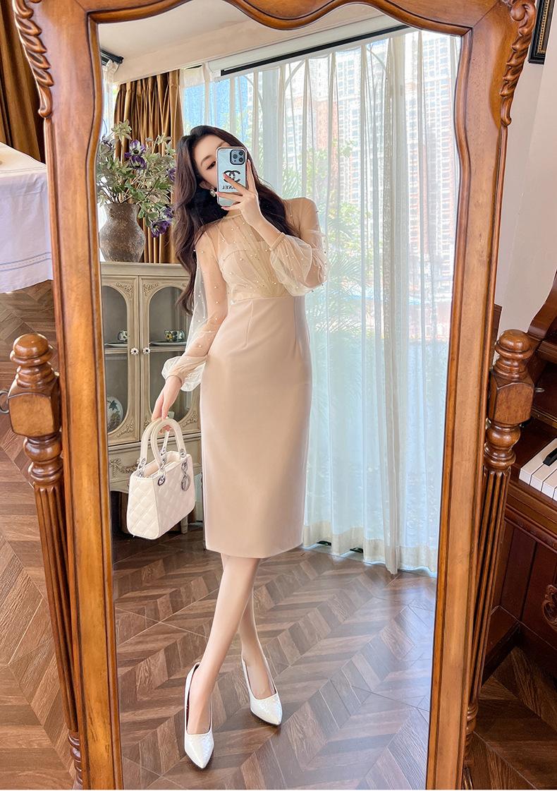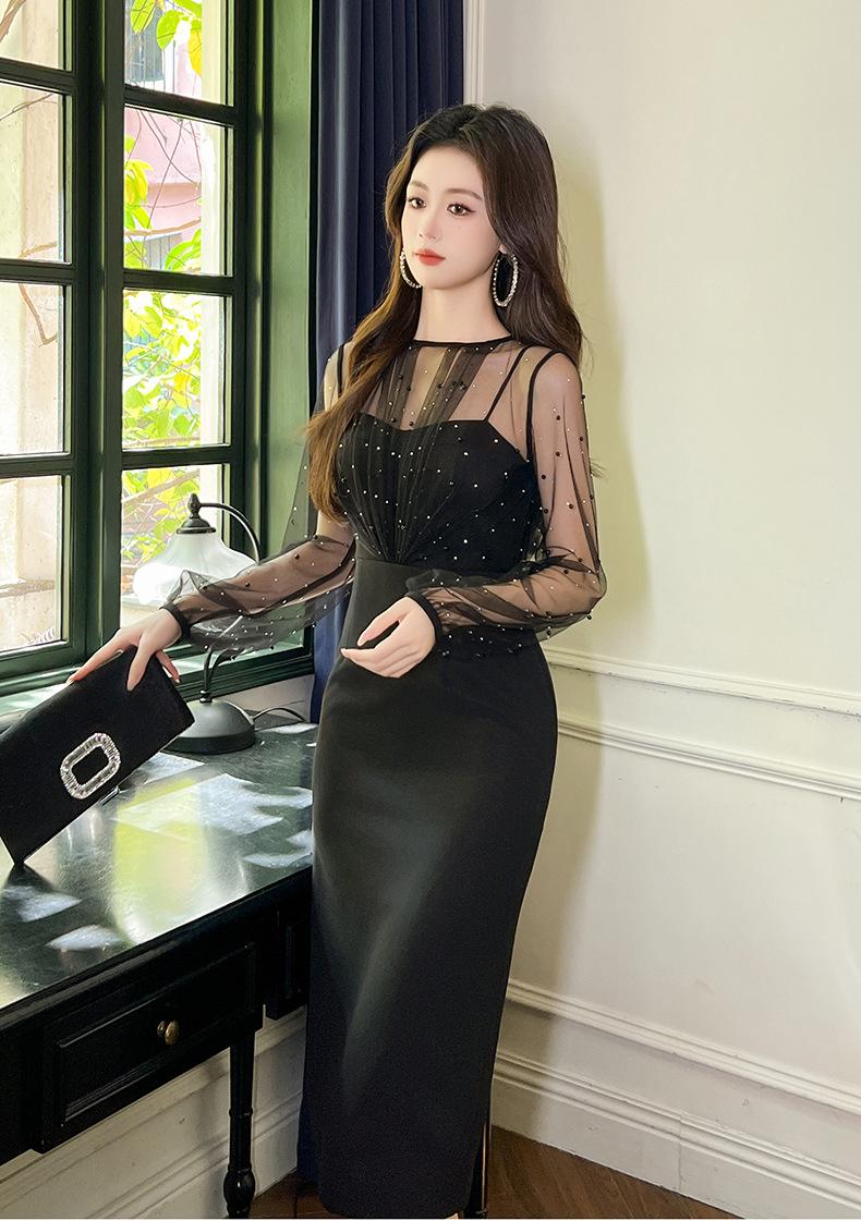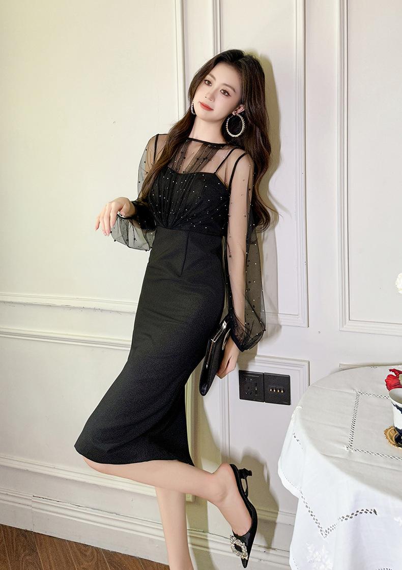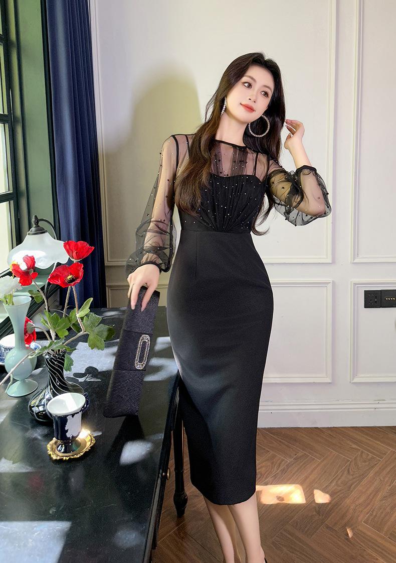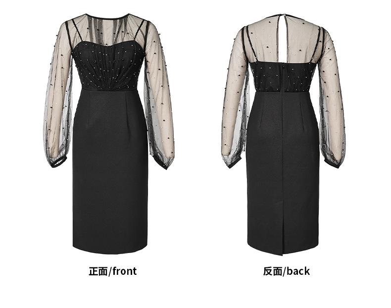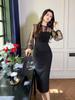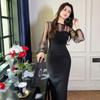 Vestido de Noite de Nicho 2025 Outono Novo Moda Feminina Sexy Transparência em Renda Vestido Justo ao Corpo 20876