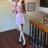 2023 Outono Novo estilo coreano elegante laço renda-up camisa xadrez saia de duas peças set suit