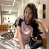 Compre Camiseta Feminina de Manga Curta Estilo Hot Girl Retrô Americano 2026 com Mangas Raglan Color Blocking, Cropped Justo Elástico no atacado no Joom.pro