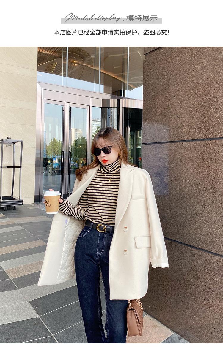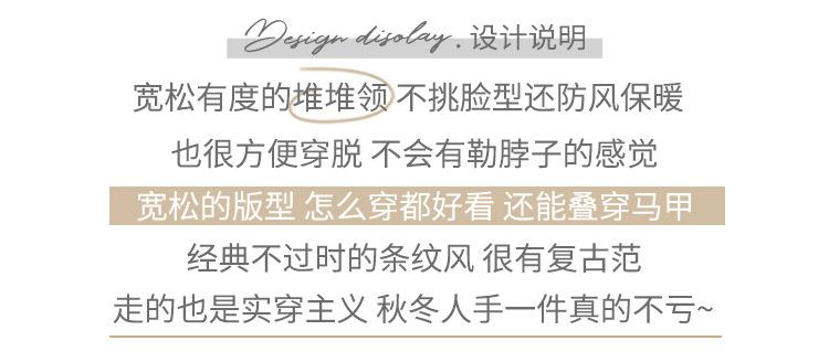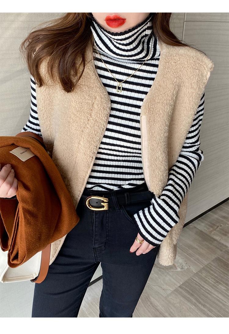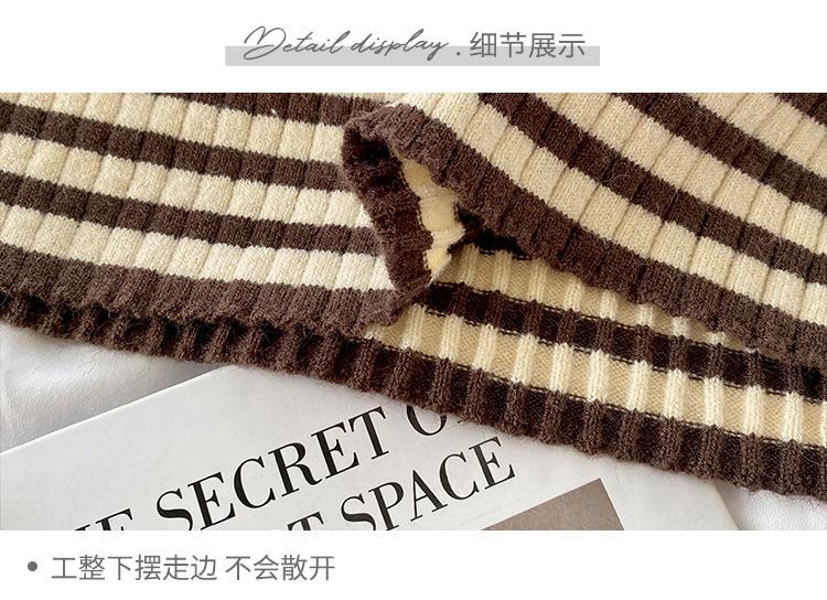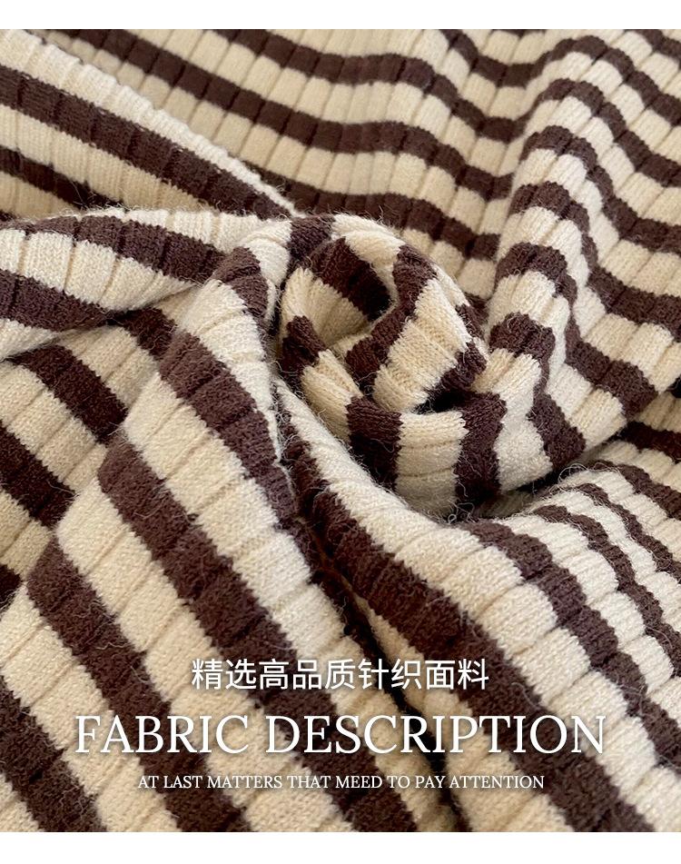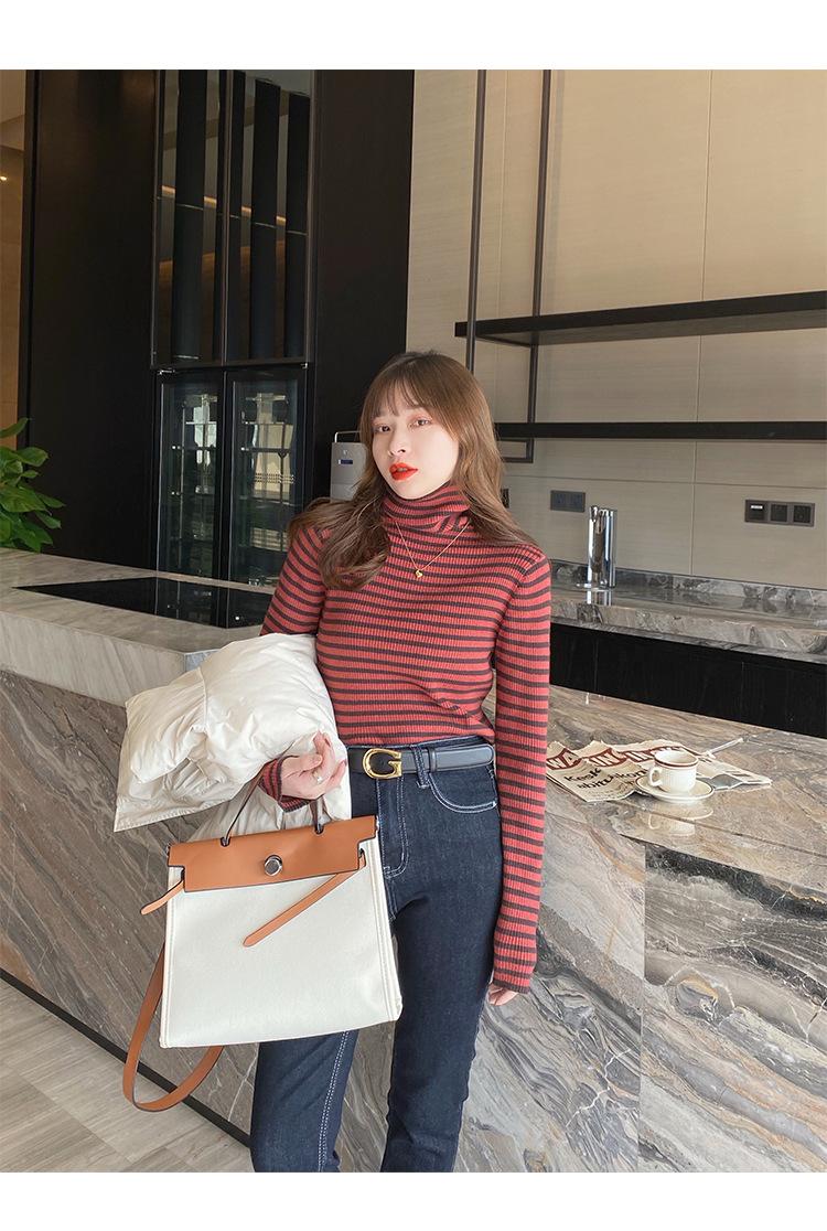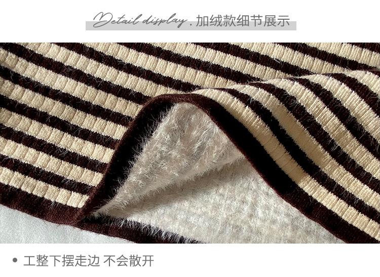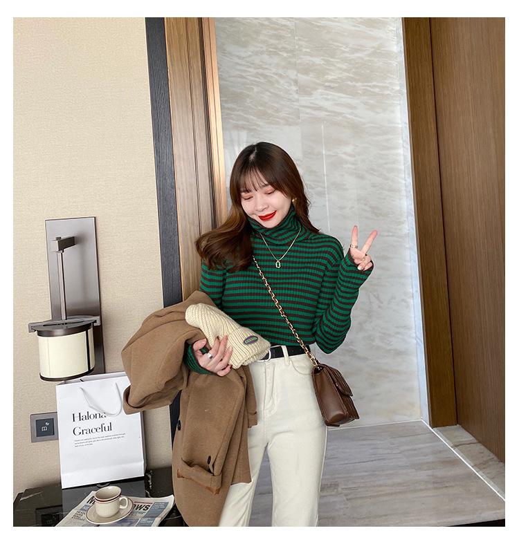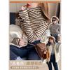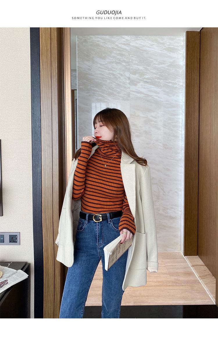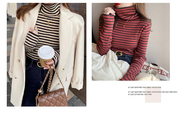 Camiseta Listrada de Gola Alta para Outono e Inverno, Camada Interna Estilosa com Veludo, Popular 2024 Novo Suéter Versátil Top Tricotado