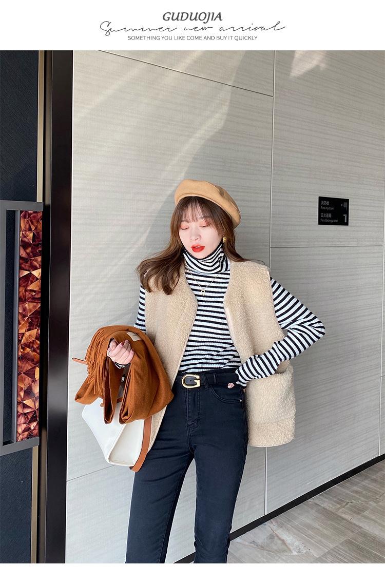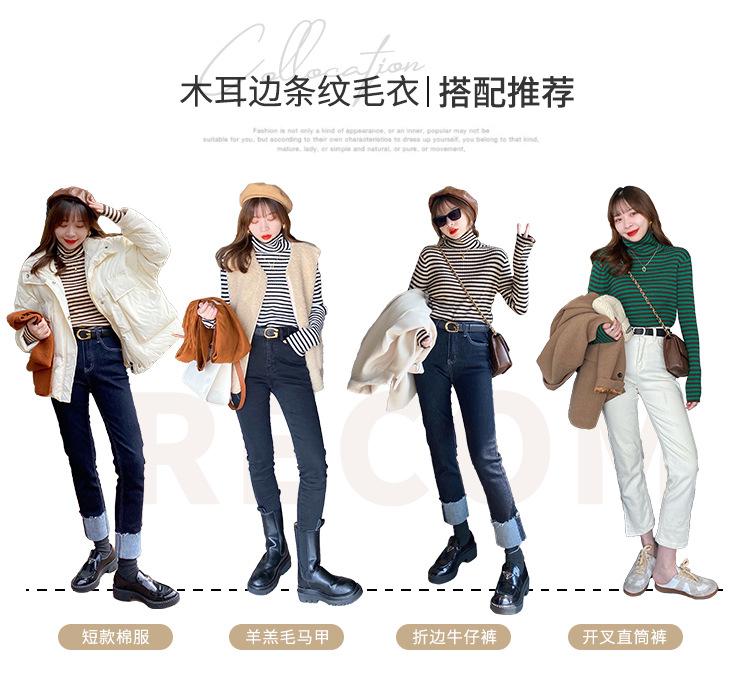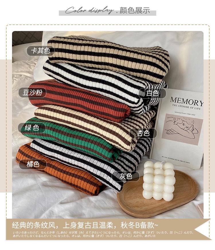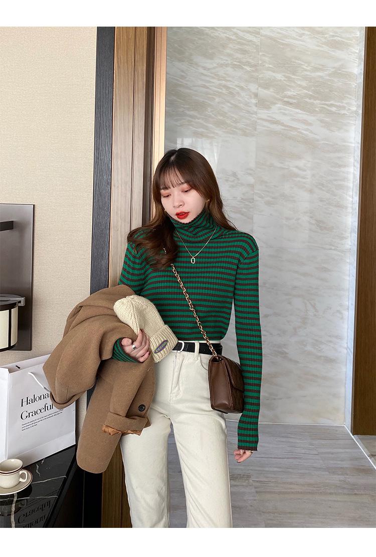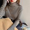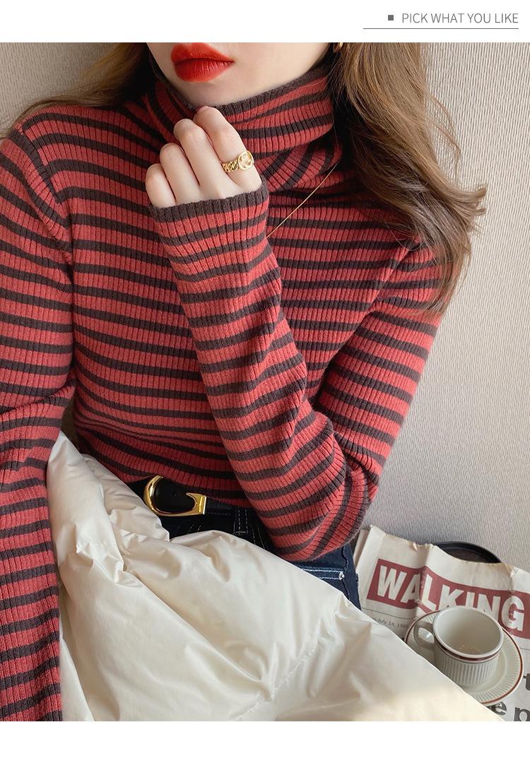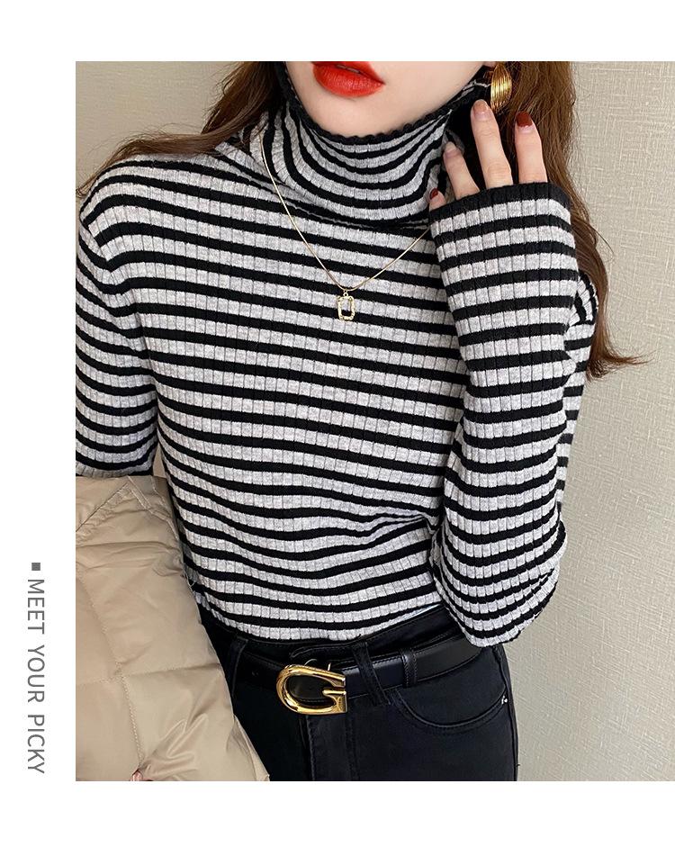 Compre Camiseta Listrada de Gola Alta para Outono e Inverno, Camada Interna Estilosa com Veludo, Popular 2024 Novo Suéter Versátil Top Tricotado no atacado no Joom.pro