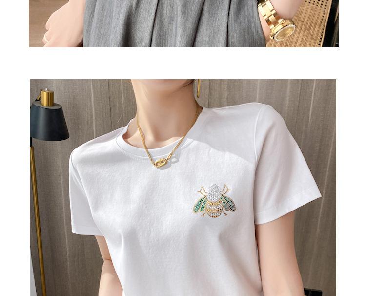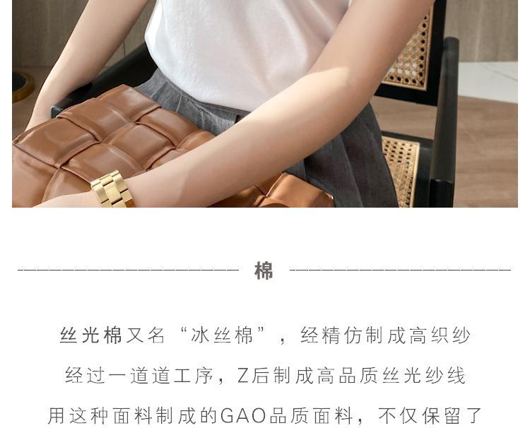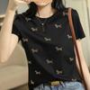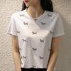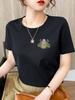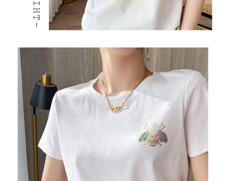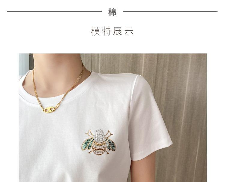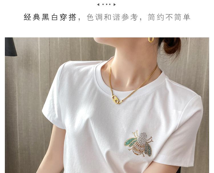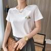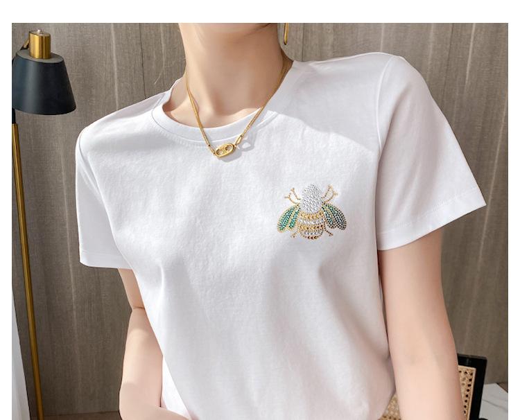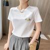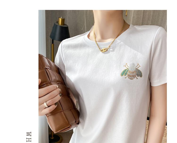 Algodão Puro Branco Manga Curta Algodão Mercerizado 80 Fios Camiseta de Manga Curta para Mulheres Verão Estampa Quente de Diamante Design Nicho Top Moda