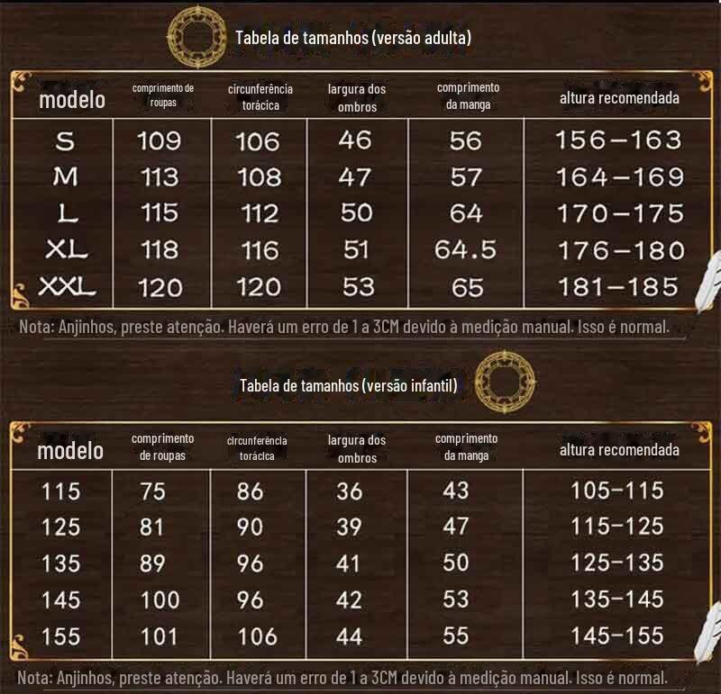 S, M, L, XL, XXL, Children's 115, Children's 125, Children's 135, Children's 145, Children's 155