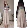 Saia Midi de Comprimento Médio para Mulheres no Outono e Inverno Nova Solta Tamanho Grande Abotoamento Simples Linha A Bainha Larga Listrada Tricotada Plissada Cintura Alta