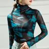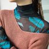 Compre Camiseta Básica de Malha Estampada Retro de Gola Alta 2024 Novo Estilo Camiseta Interna Estilo Europeu no atacado no Joom.pro