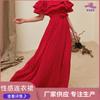 Vestido de Chiffon Novo Vestido de Verão Vestido Sexy Elegante Longo Cor Sólida Vestido de Gala Fabricante Atacado