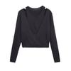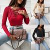 2024 Roupas femininas europeias e americanas primavera e outono Amazon nova costela cor sólida V-neck slim-fit top de manga comprida para mulheres