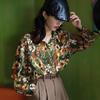 Estilo retrô Hong Kong estampado camisa de manga comprida primavera e outono top feminino novo temperamento francês solto design senso camisa nicho