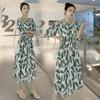 Leite de mamão verão nova chegada estilo coreano vestido elegante com um personagem colar pullover emagrecimento cintura curta estampada moda feminina