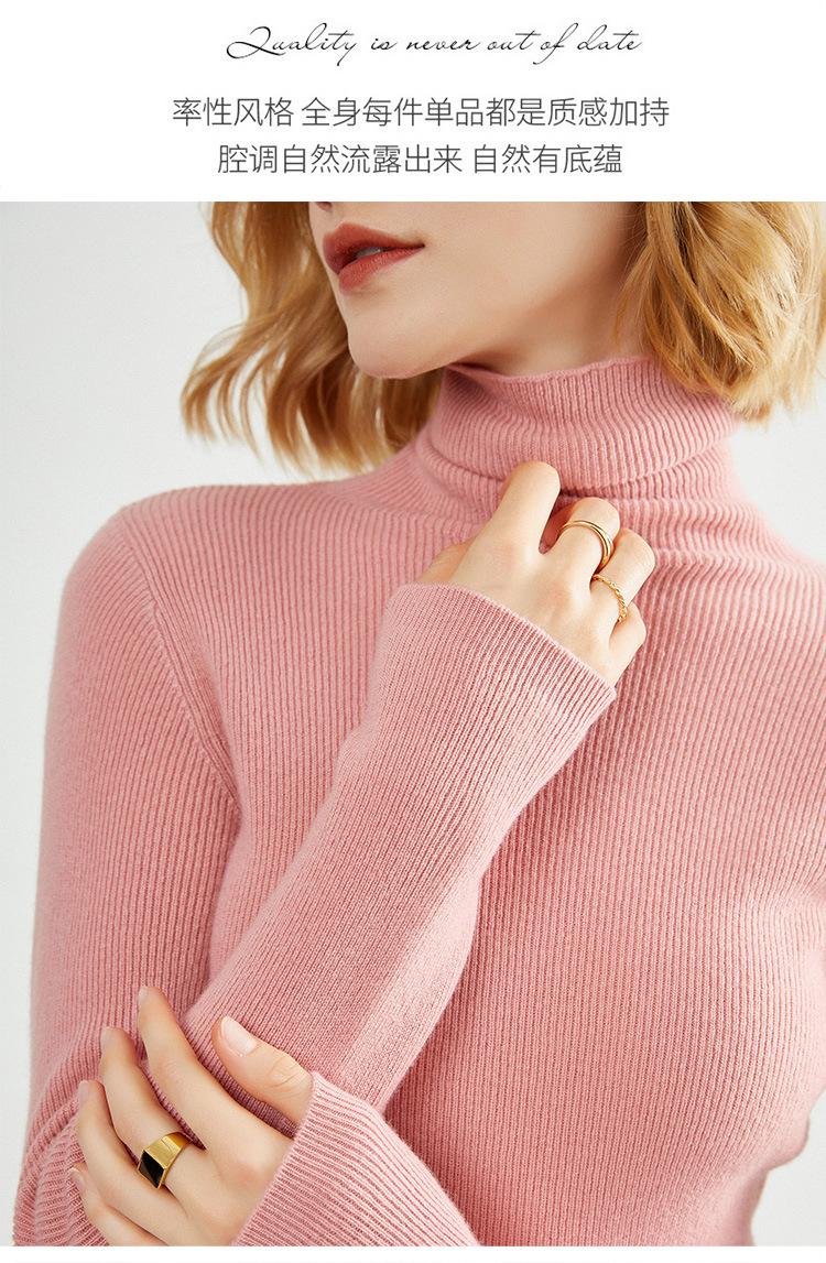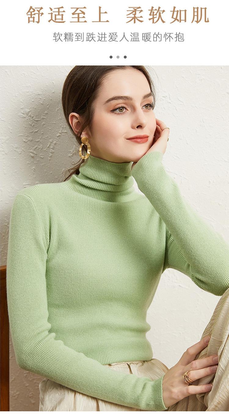 2021 versão coreana do pulôver feminino gola alta camisa de fundo cor sólida magro moda camisola de malha fina gola pilha camisola feminina