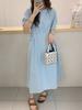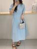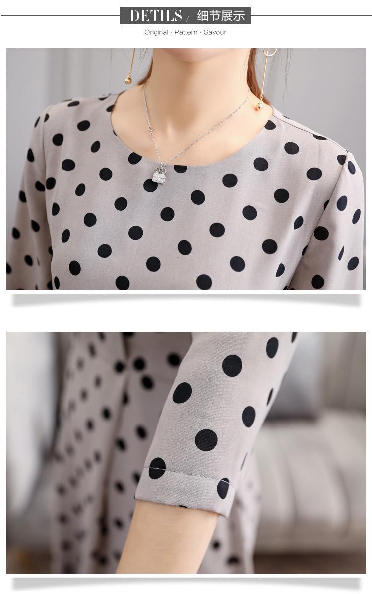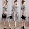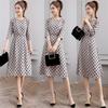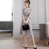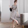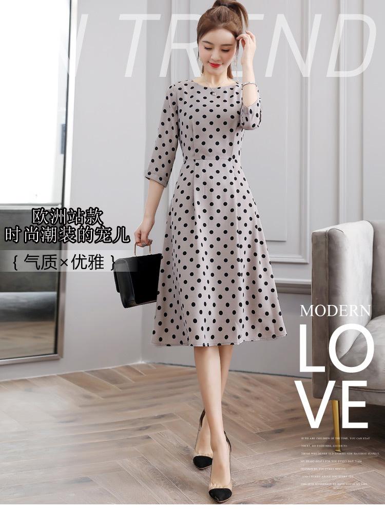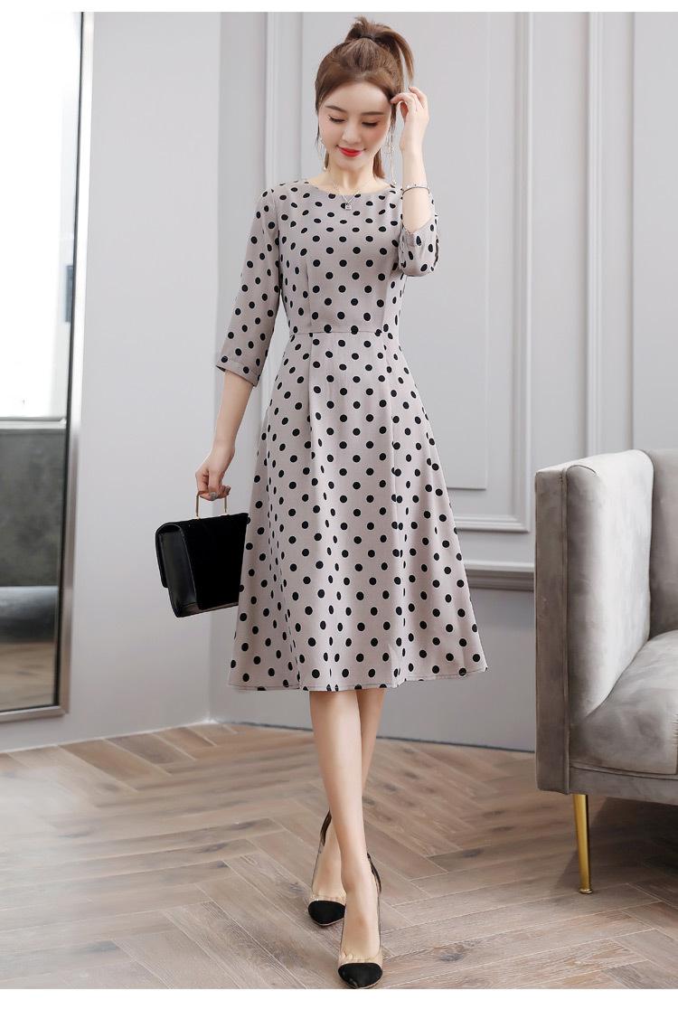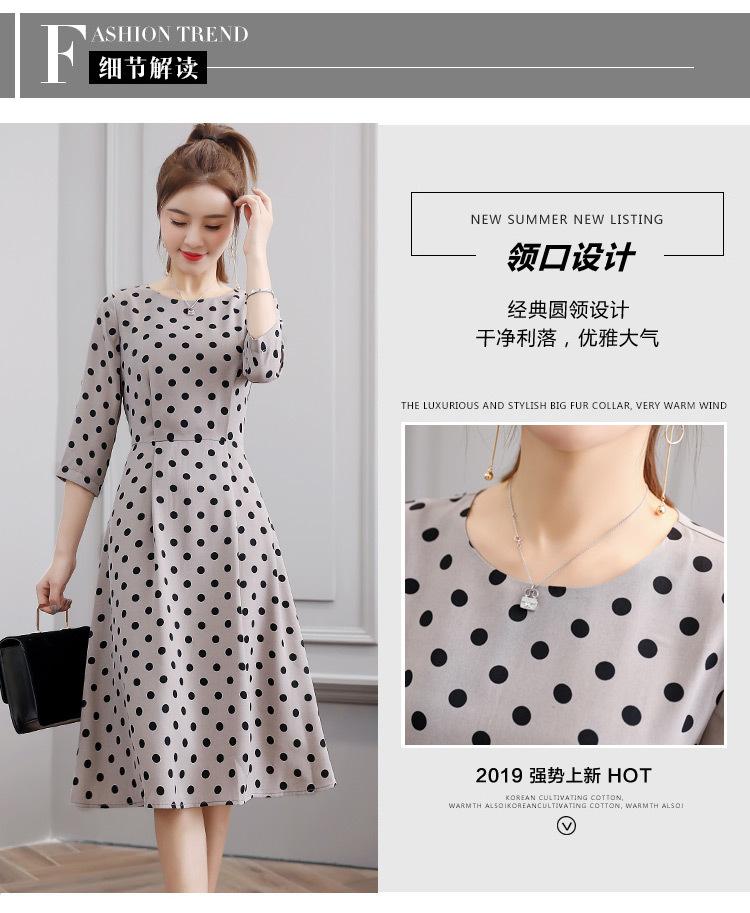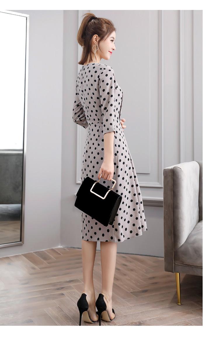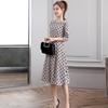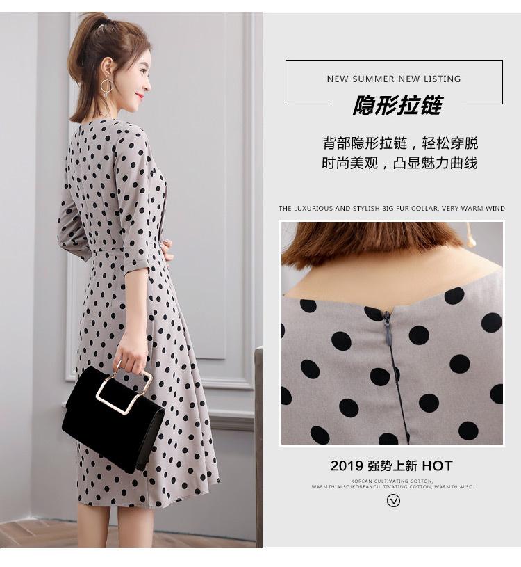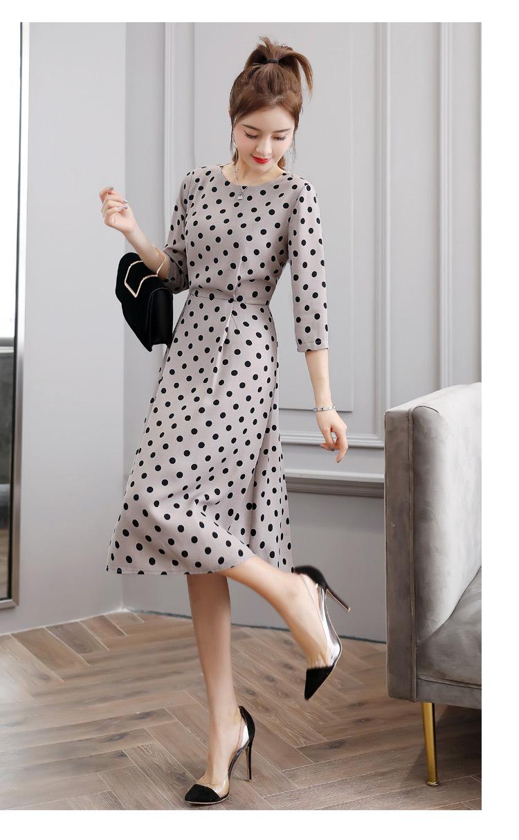 Leite de mamão primavera e verão novo estilo coreano elegante cintura apertada emagrecimento pescoço redondo moda sete mangas polka dot mid-length vestido