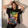 Camiseta feminina retrô americana de algodão puro, manga curta, verão 2024, nova, estilo Harajuku solto, super quente, marca de moda europeia e americana