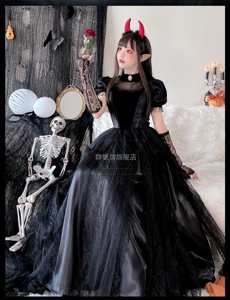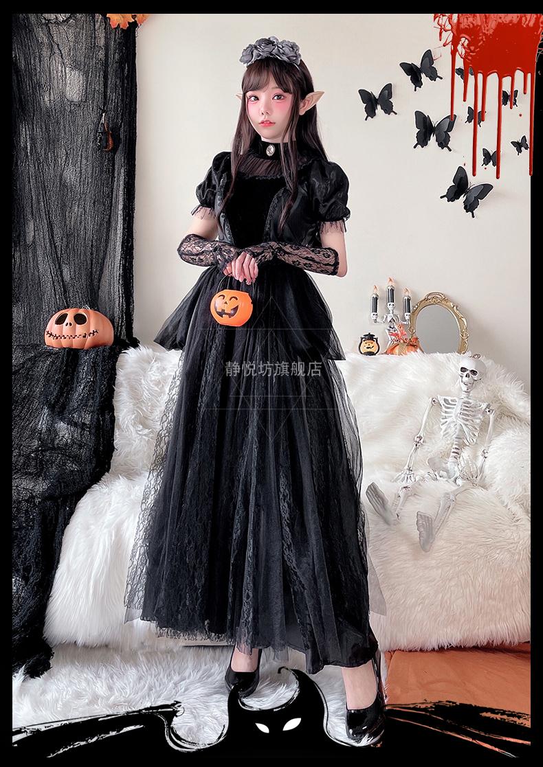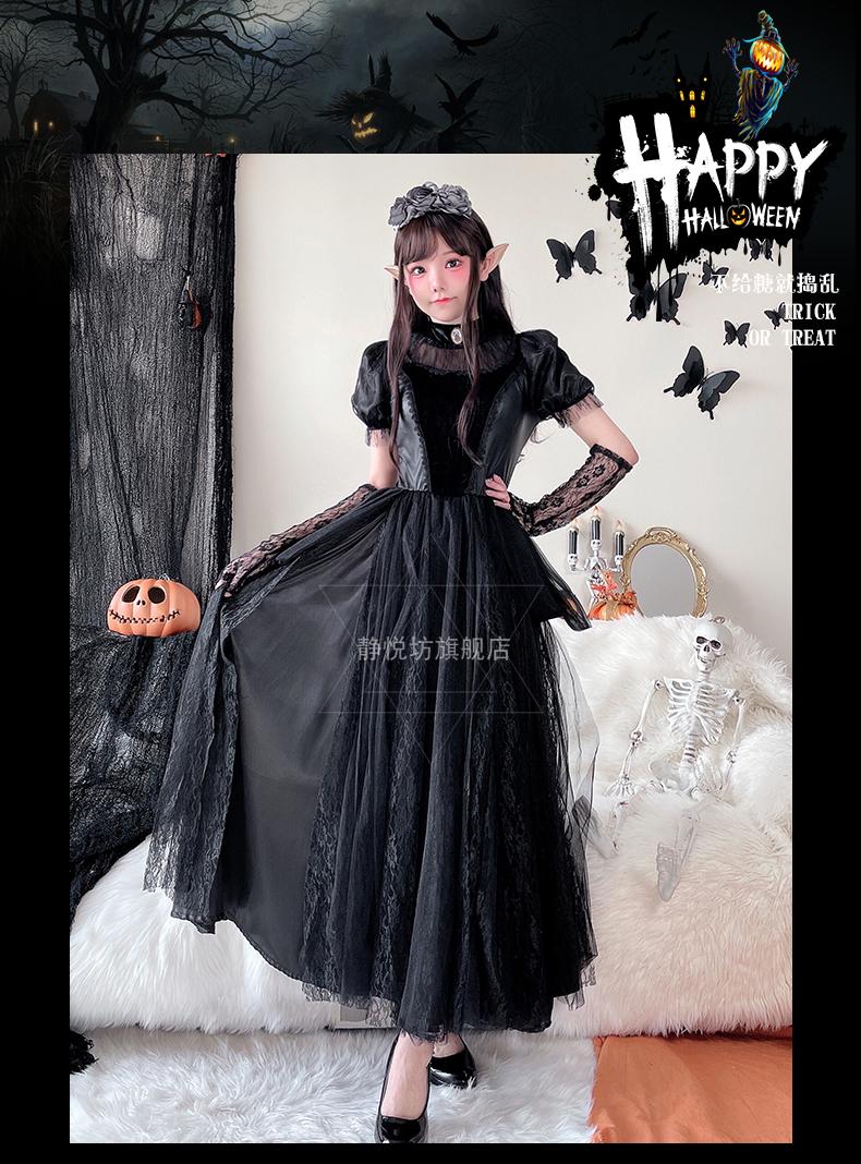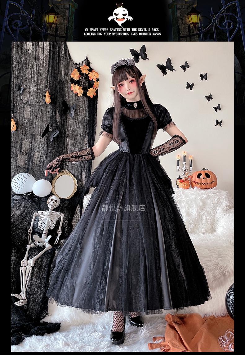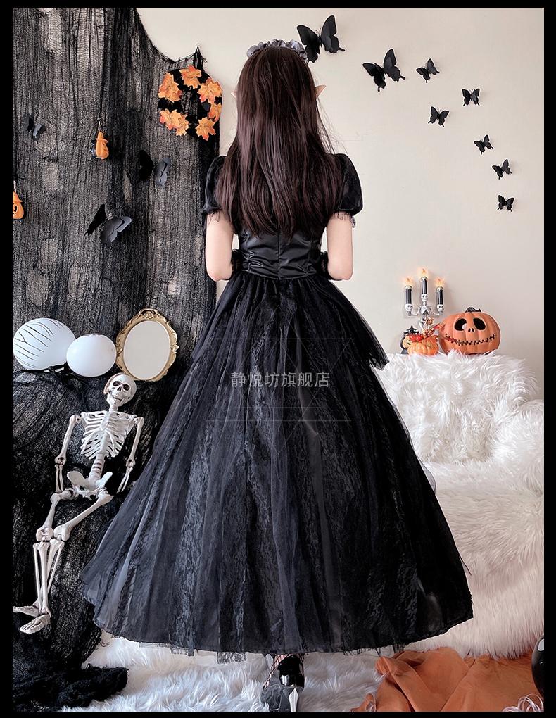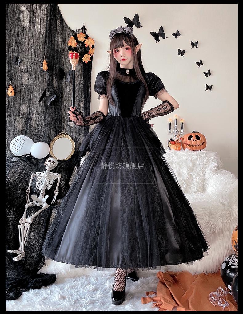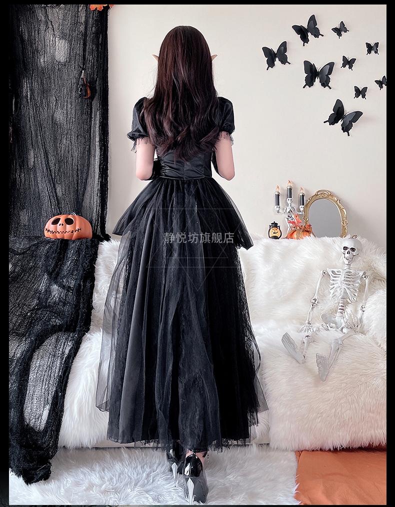 Fantasia de Halloween Adulto Bruxa Fantasma Noiva Gótica Vampiro Cosplay Jogo de Interpretação Saia Longa Escura