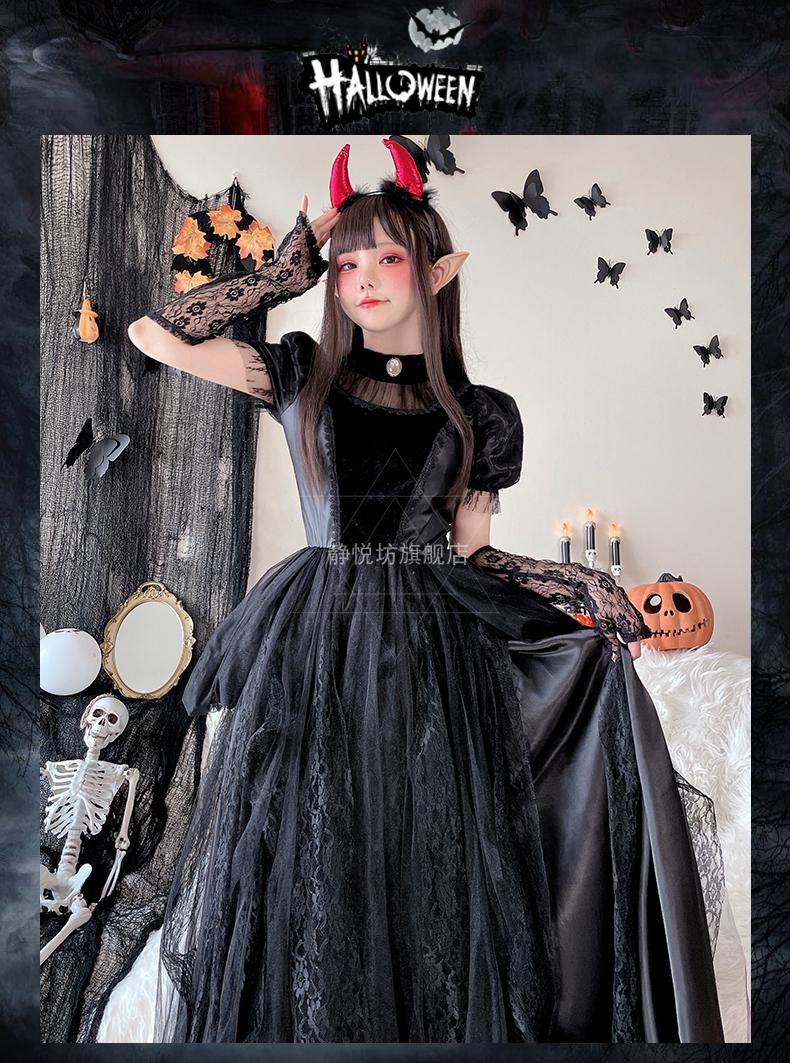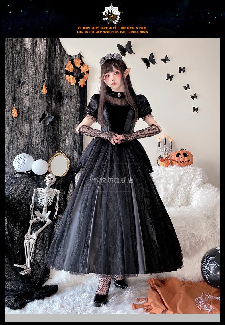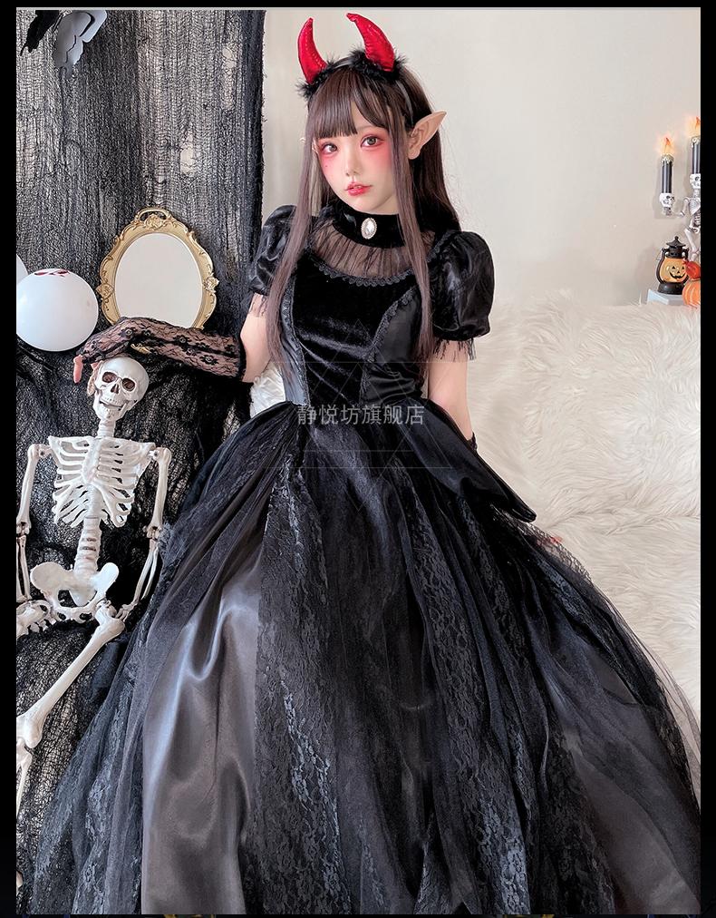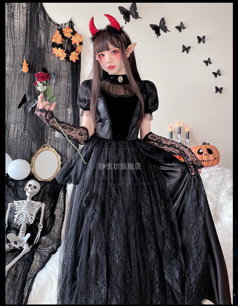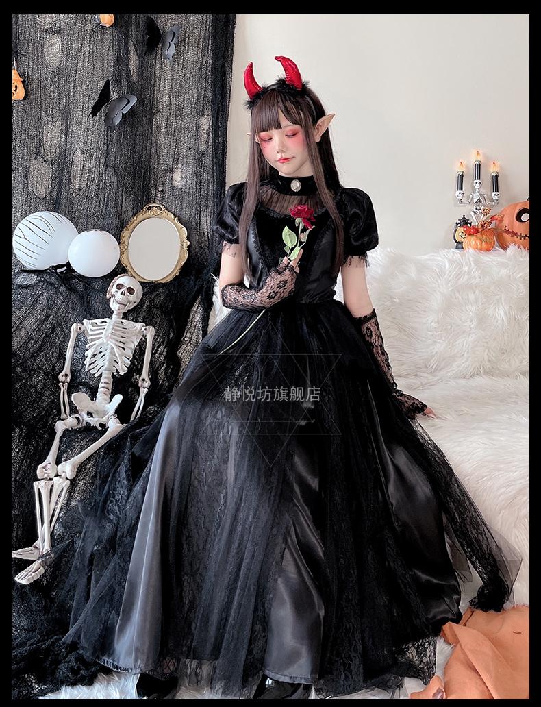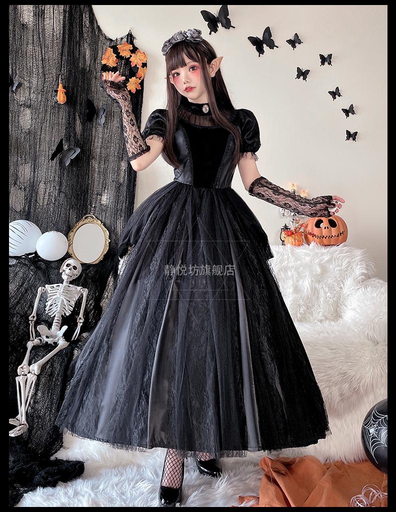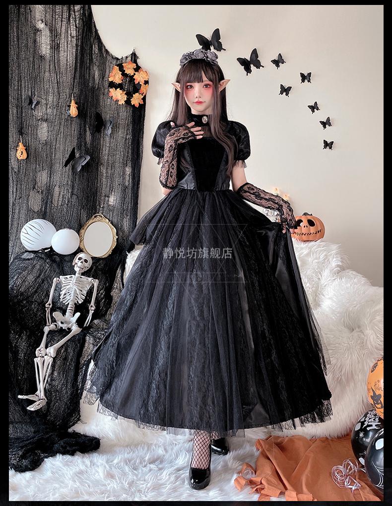 Fantasia de Halloween Adulto Bruxa Fantasma Noiva Gótica Vampiro Cosplay Jogo de Interpretação Saia Longa Escura