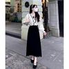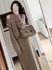 Mamão Leite Primavera e Outono Novo Conjunto de Duas Peças Coreano Moda elegante Slim-fit Casaco de lã Saia de lã terno Mulheres da moda